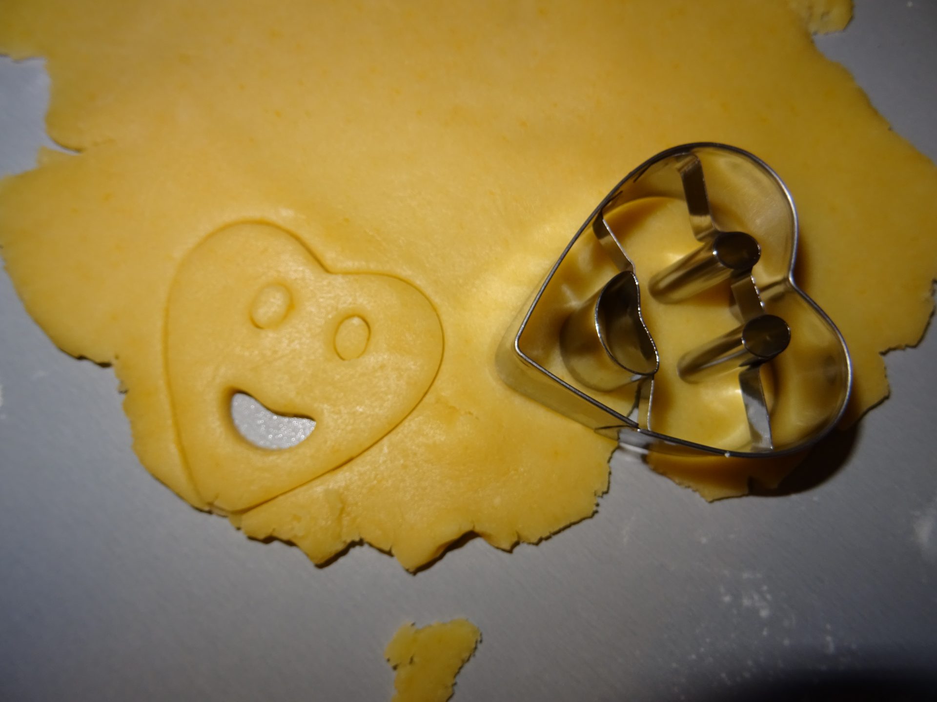 On reprend la même recette et on utilise les emportes pièces Smiley entre deux découpes de smiley on étale de la pâte à tartiner au chocolat.