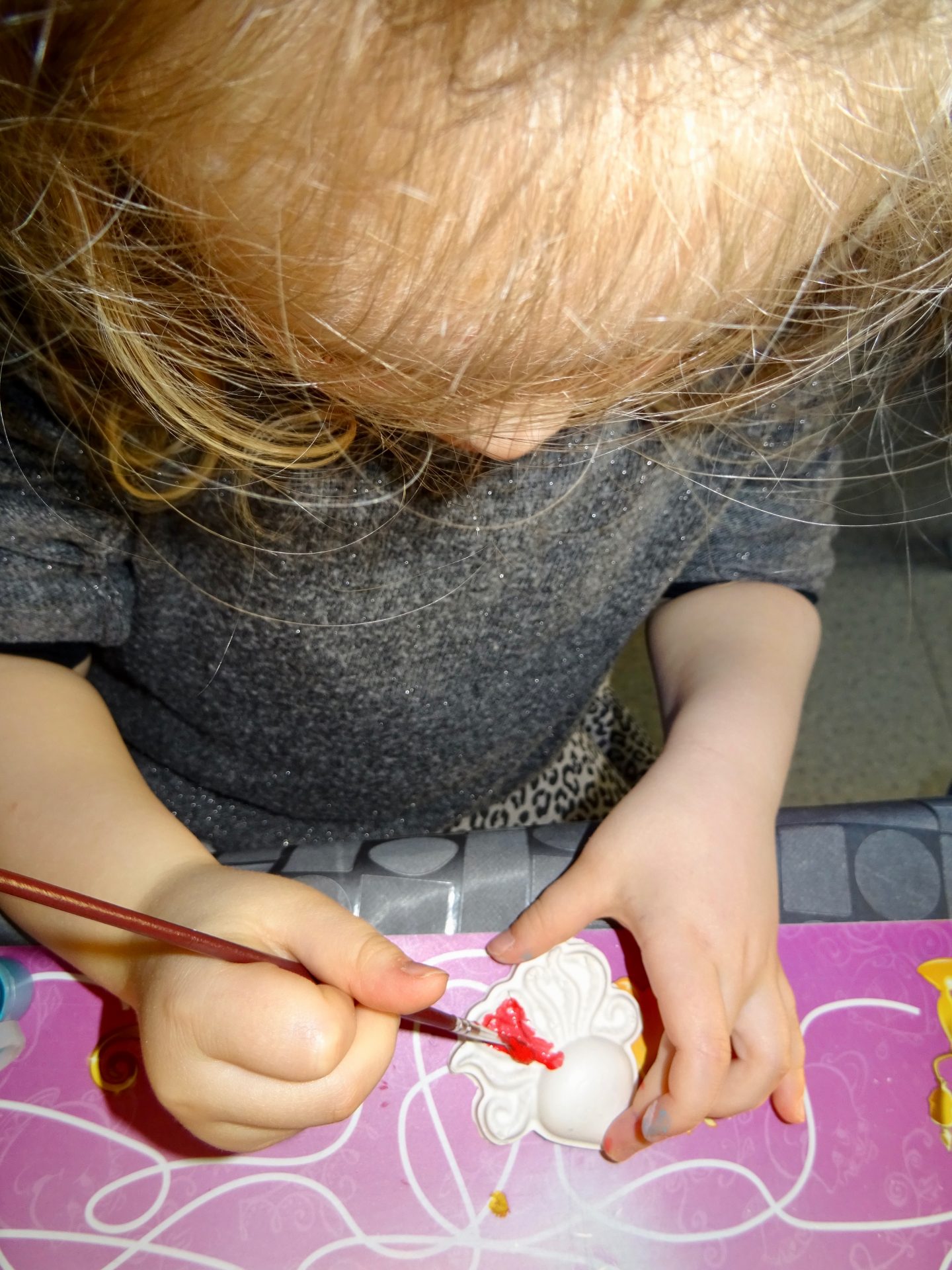 Place au démoulage avec maman car c’est fragile tout de même et c’est parti pour le coloriage réalisé uniquement par chipie.