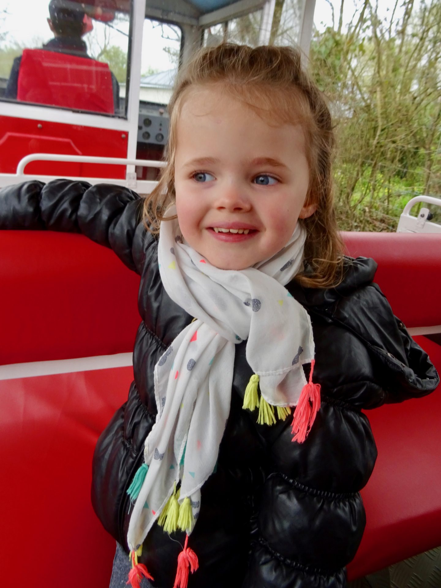 Chipie adore comme tous les enfants d’ailleurs. On y croise des animaux, on passe sous des branches, le petits train saute un peu et essaie d’éviter les flaques d’eau…