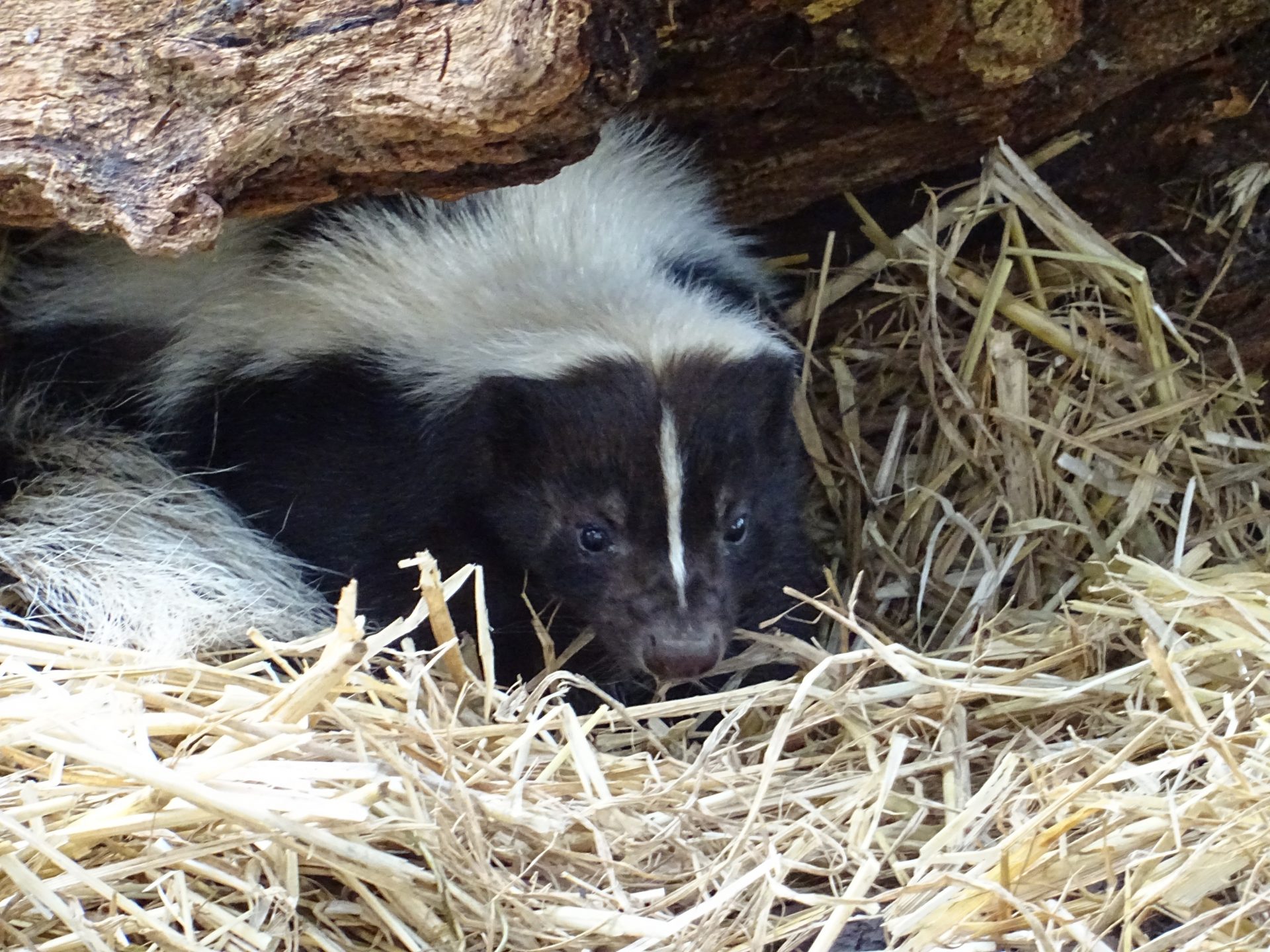 Petite et agile avec une magnifique queue en panache, la mouffette rayée, originaire d’Amérique du Nord, est un vrai spectacle à elle seule !