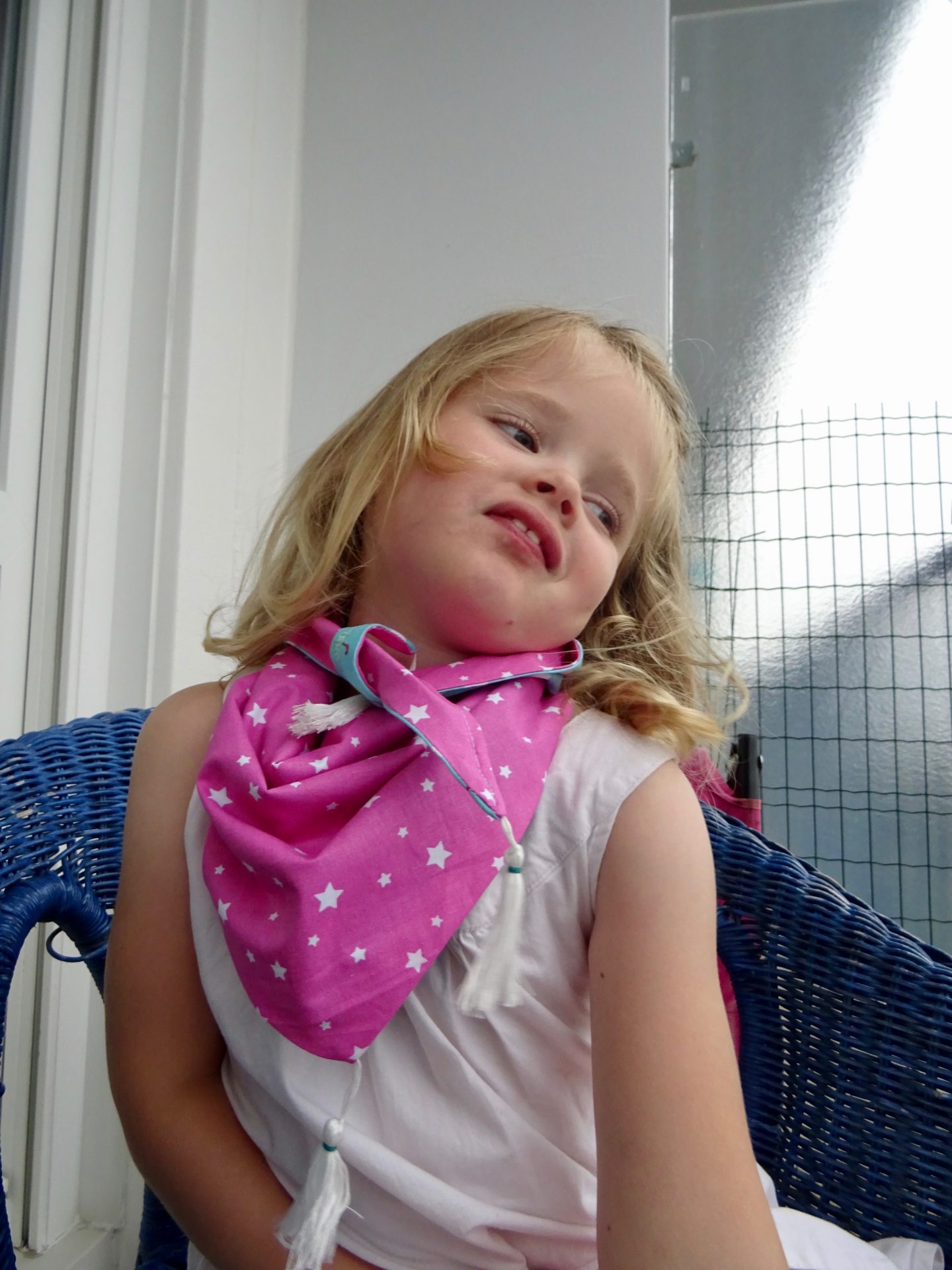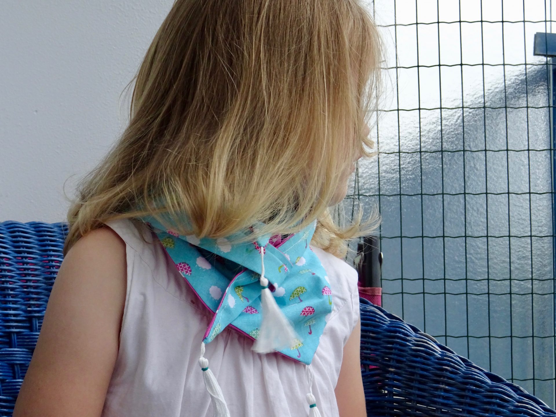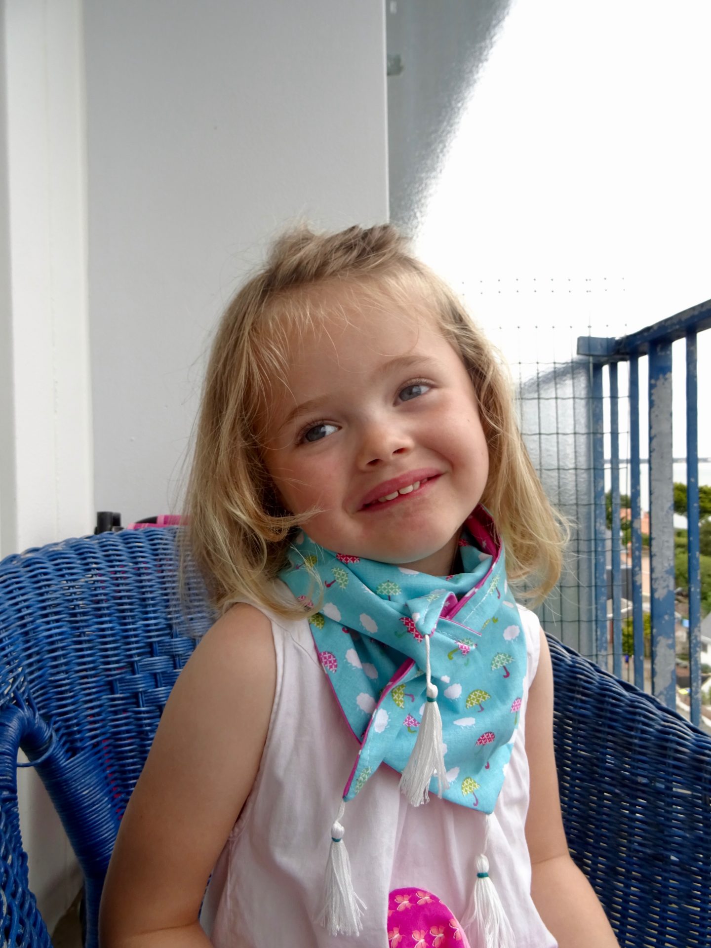 Ludivine a donc réalisé pour ma chipie un jolie foulard ou chèche « comme vous le souhaitez ».