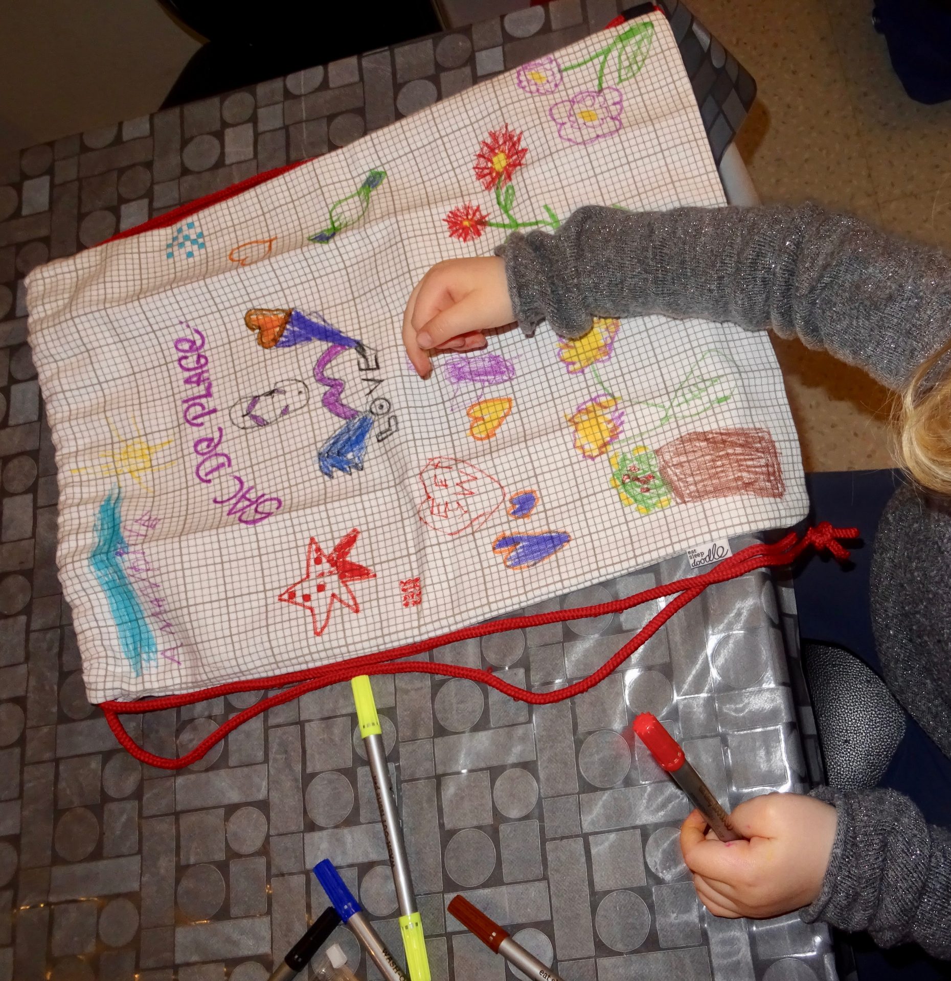Leur mission : encourager la créativité et l’apprentissage avec des textiles amusants à griffonner, colorier et dessiner avec des stylos lavables.