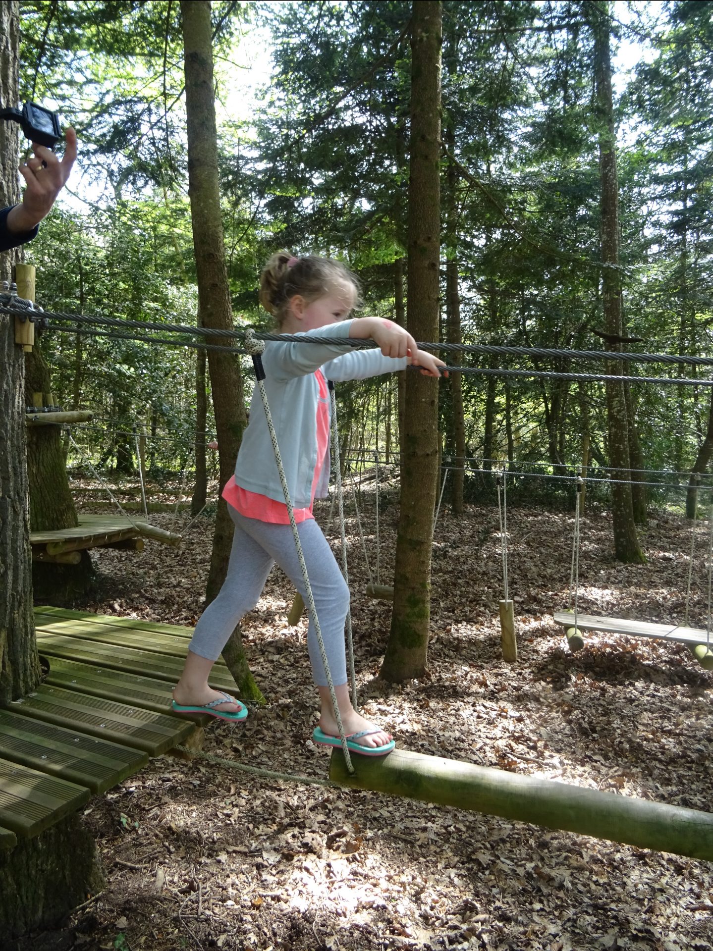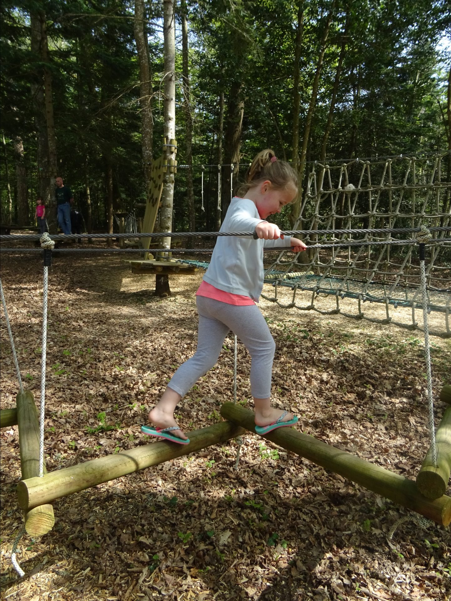 Après avoir commencé par les structures gonflables qui faisaient de l’œil à chipie depuis son arrivée, nous nous sommes dirigés vers l’entrée pour réaliser le parcours équilibre Juniors dans les arbres du Parc de jeux du château de La Baule.