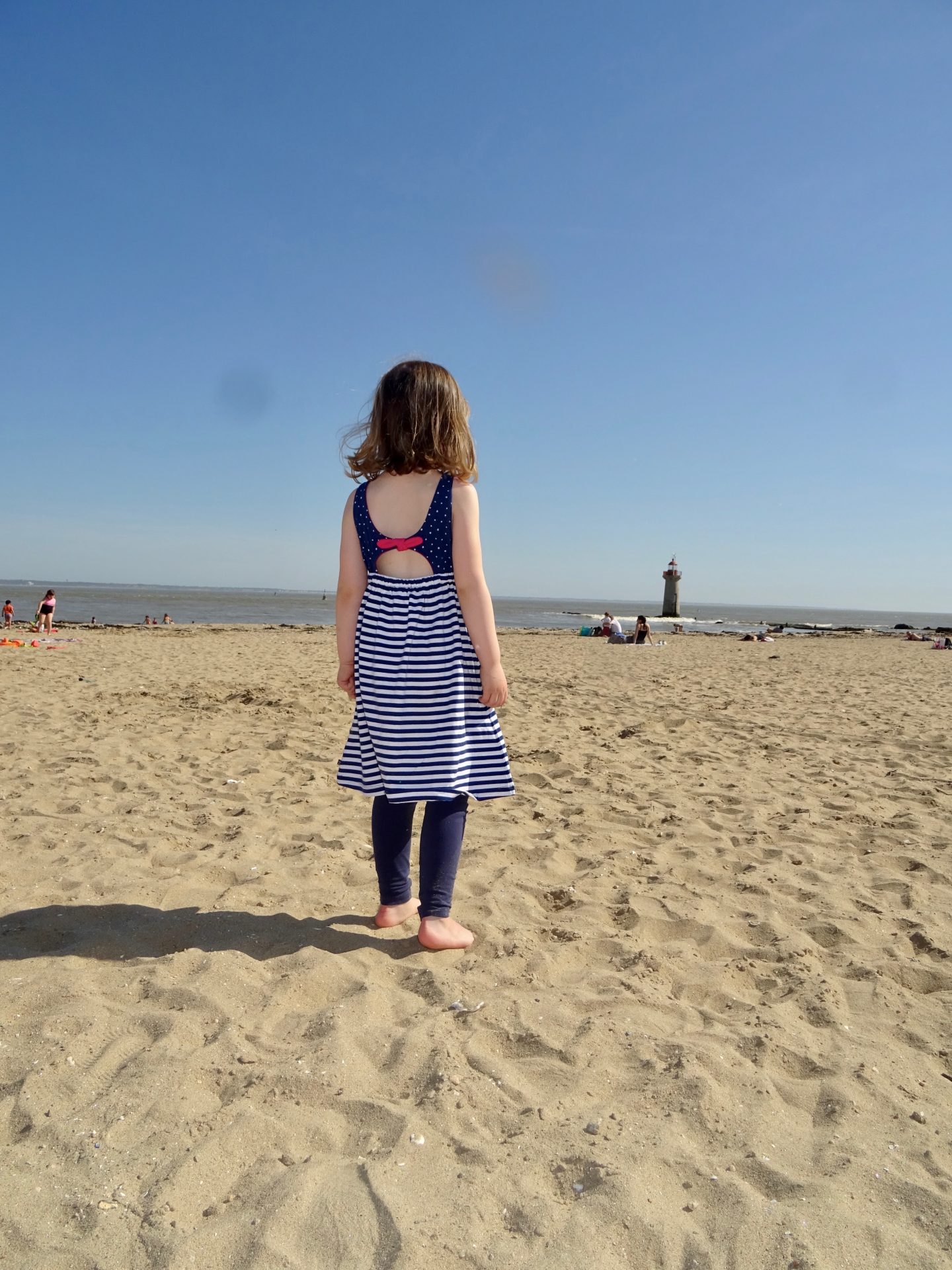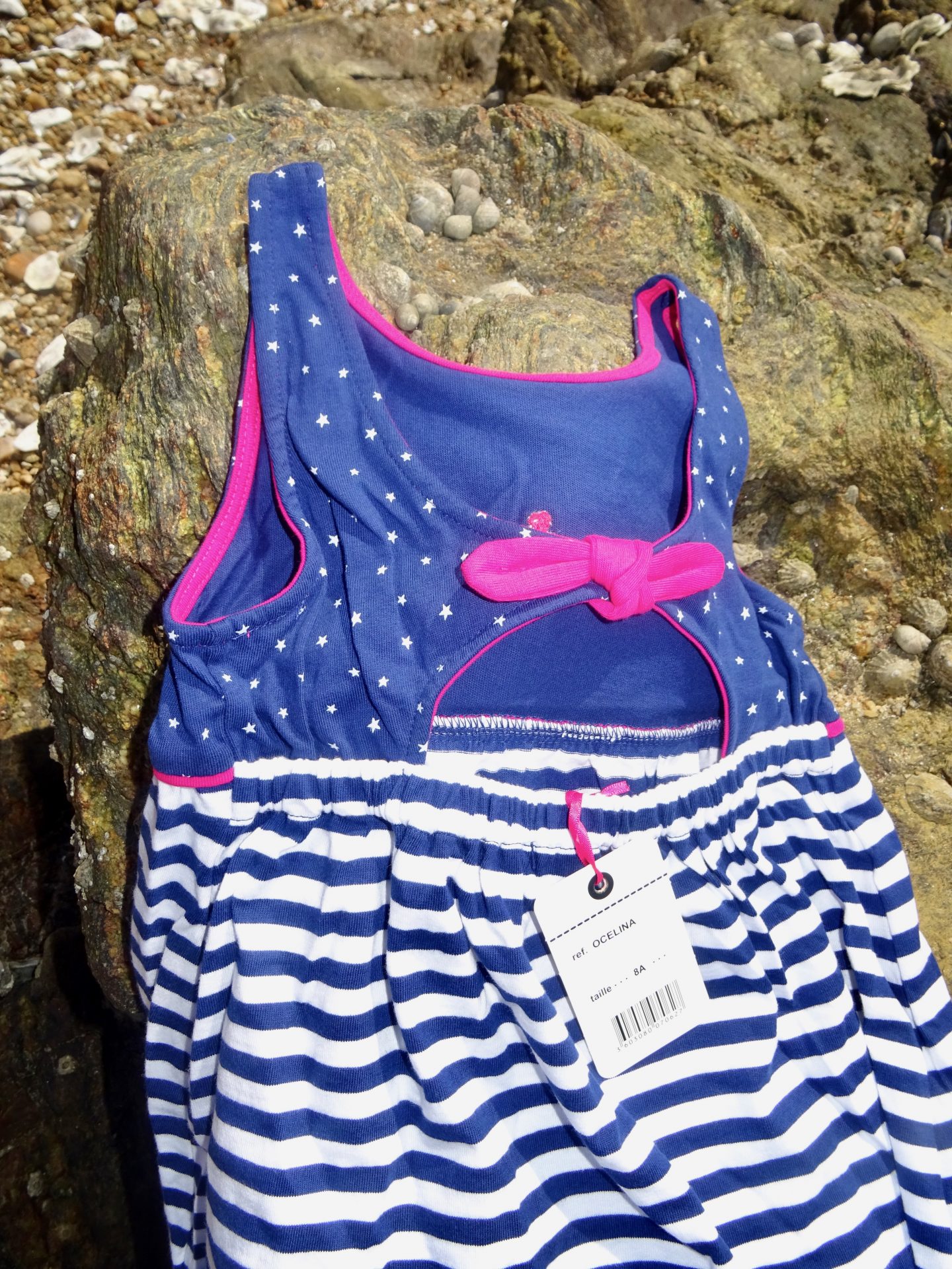 Je suis très fan des marinières . Je crois bien en avoir toujours eu dans ma garde robe ! Pour les enfants, c’est tout aussi beau et cette robe le montre bien. Le petit nœud dans le dos est tout mignon.