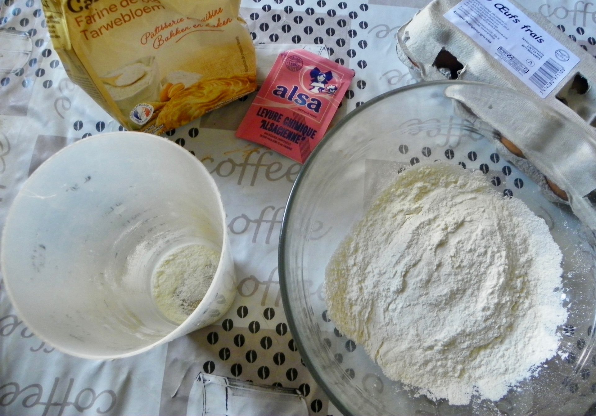 Versez la farine et la levure dans un saladier. Mélangez.