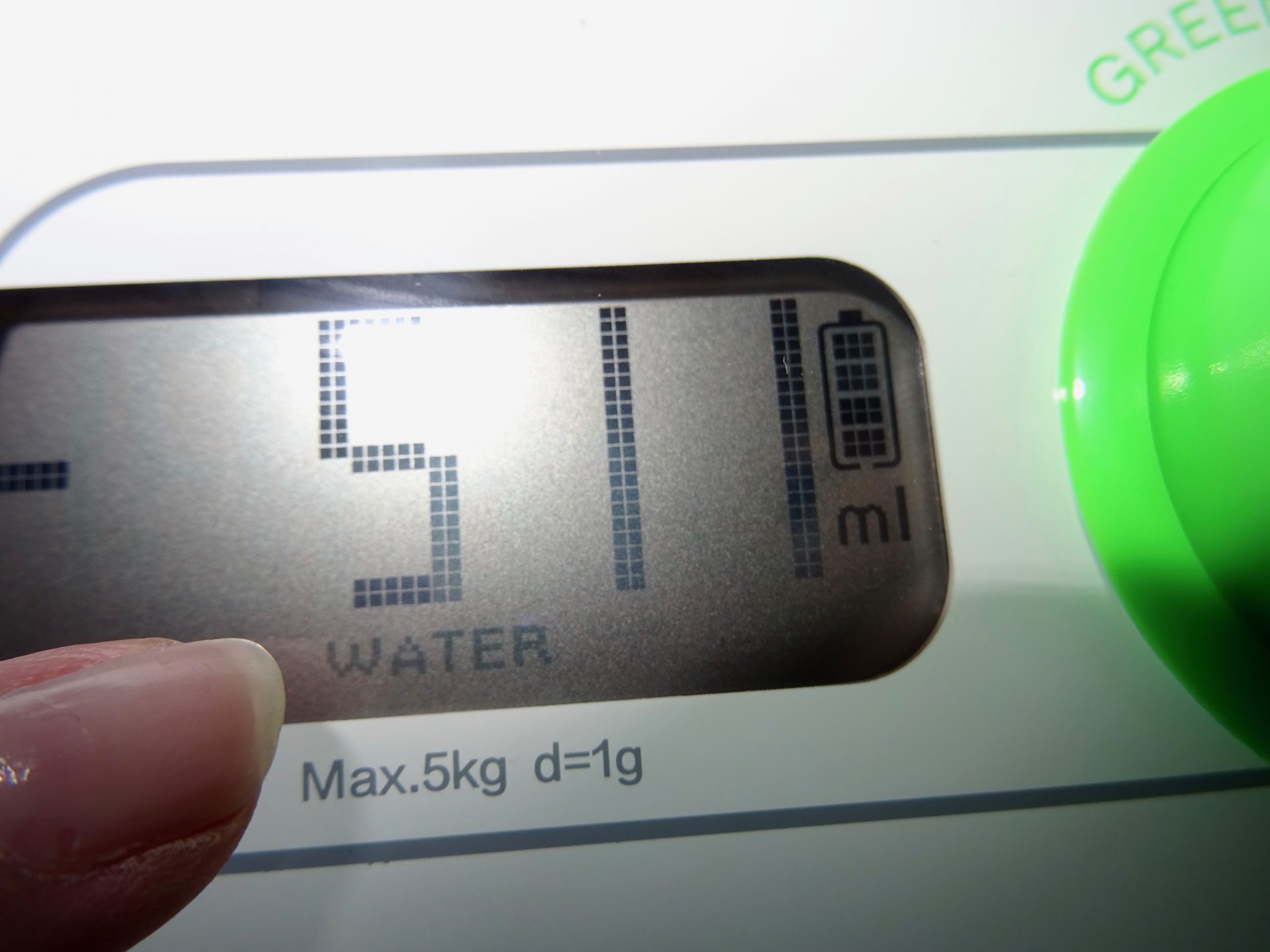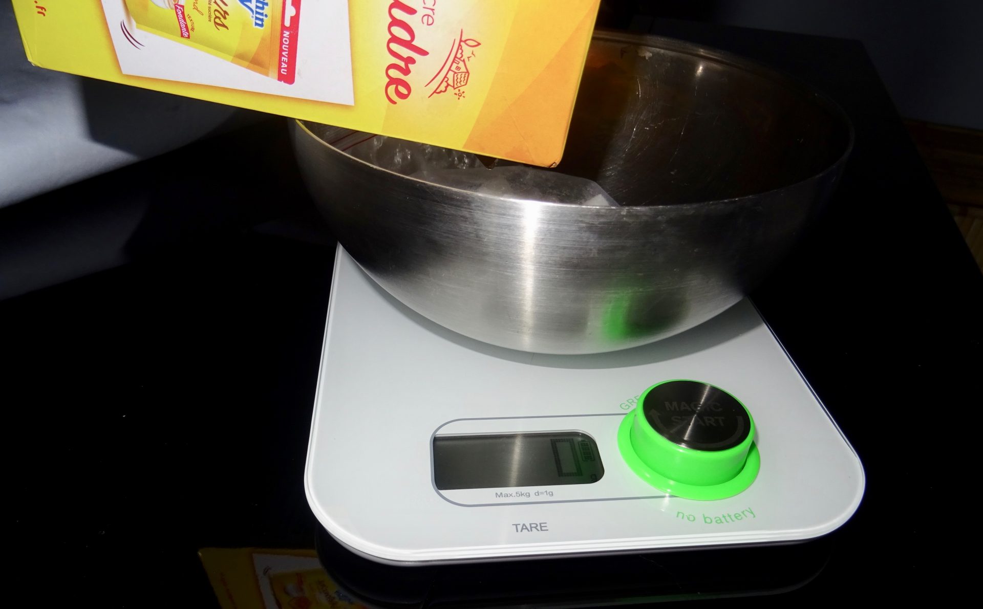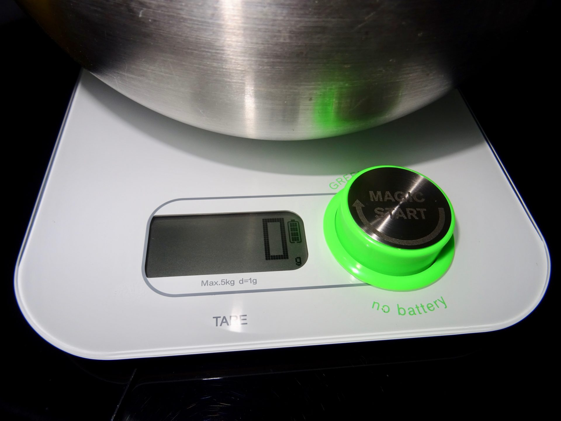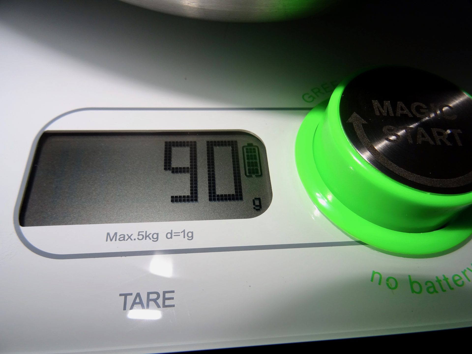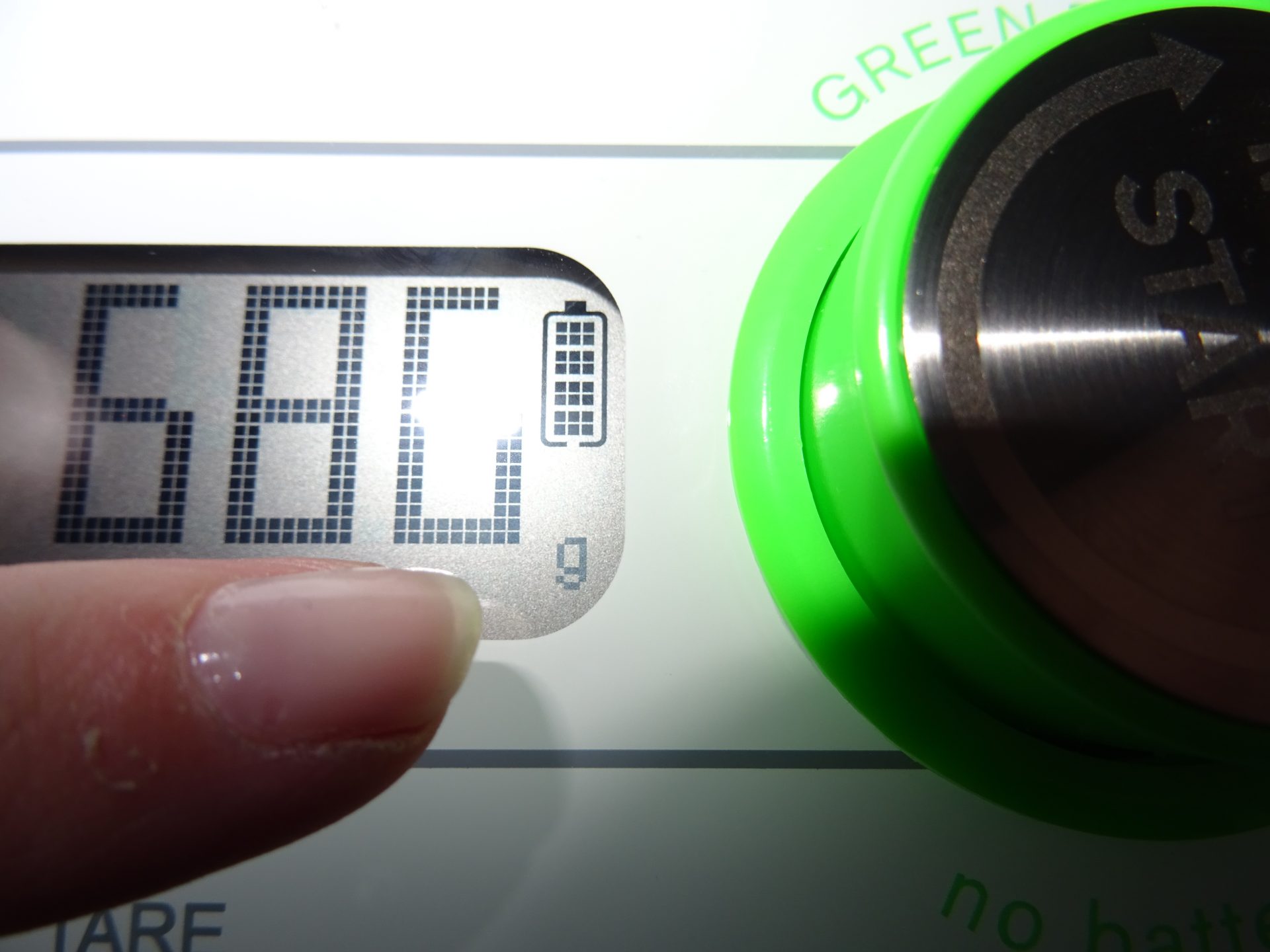 Et voilà un tour de bouton pour recharger la batterie et je peux mesurer mes pistaches !