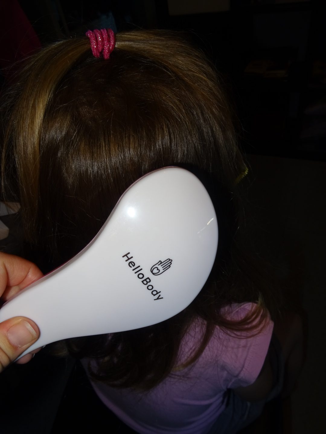 Les poils en plastique de la ‘Hello Shiny Hair Brush’ glissent facilement et doucement à travers la chevelure.