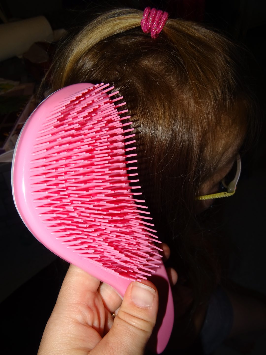 Pour commencer j’ai utilisé cette brosse à cheveux pour chipie qui a les cheveux qui s’emmêlent très vite.