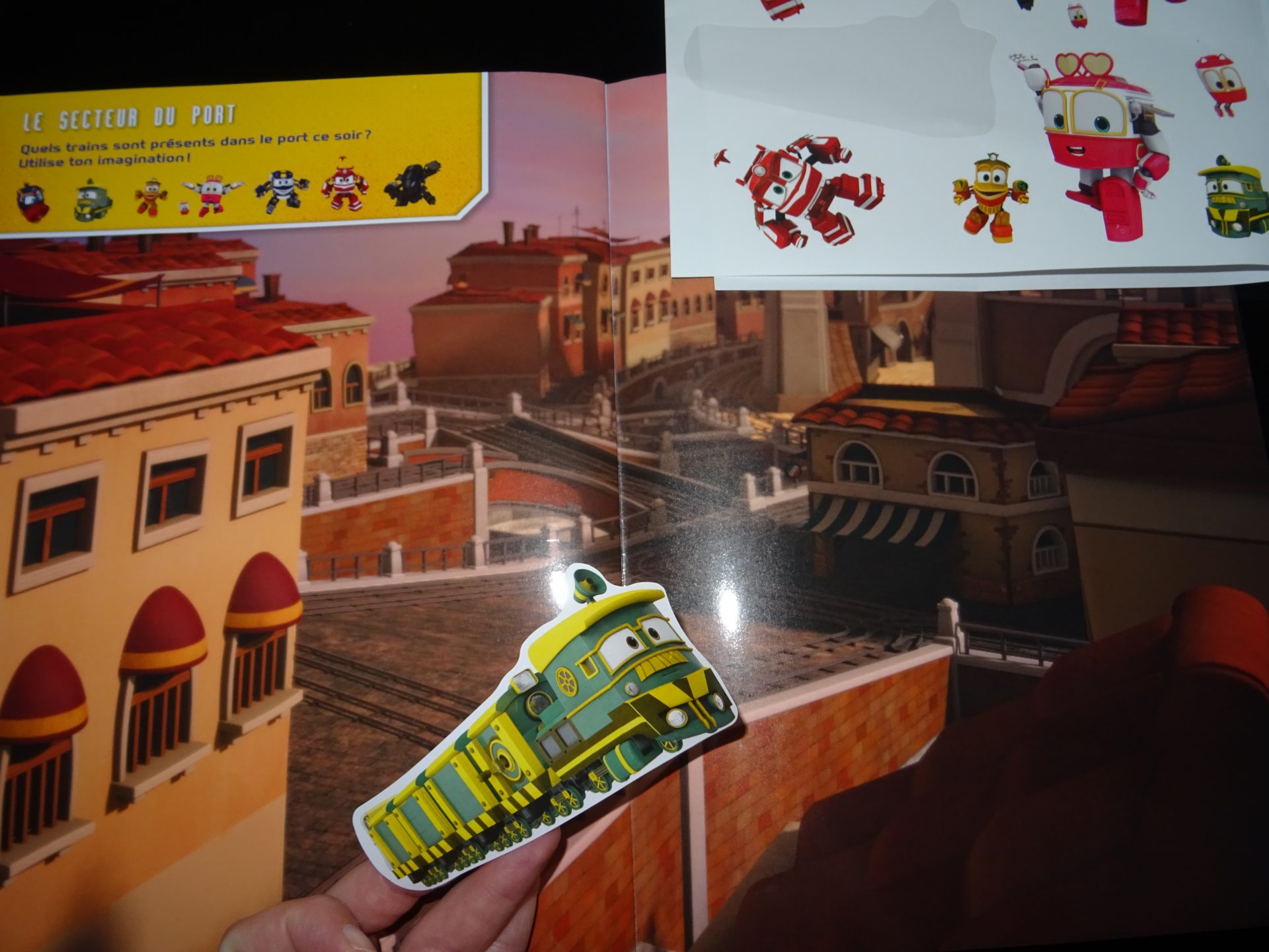 Un livre plein de stickers à coller sur de superbes décors du monde des robots trains !