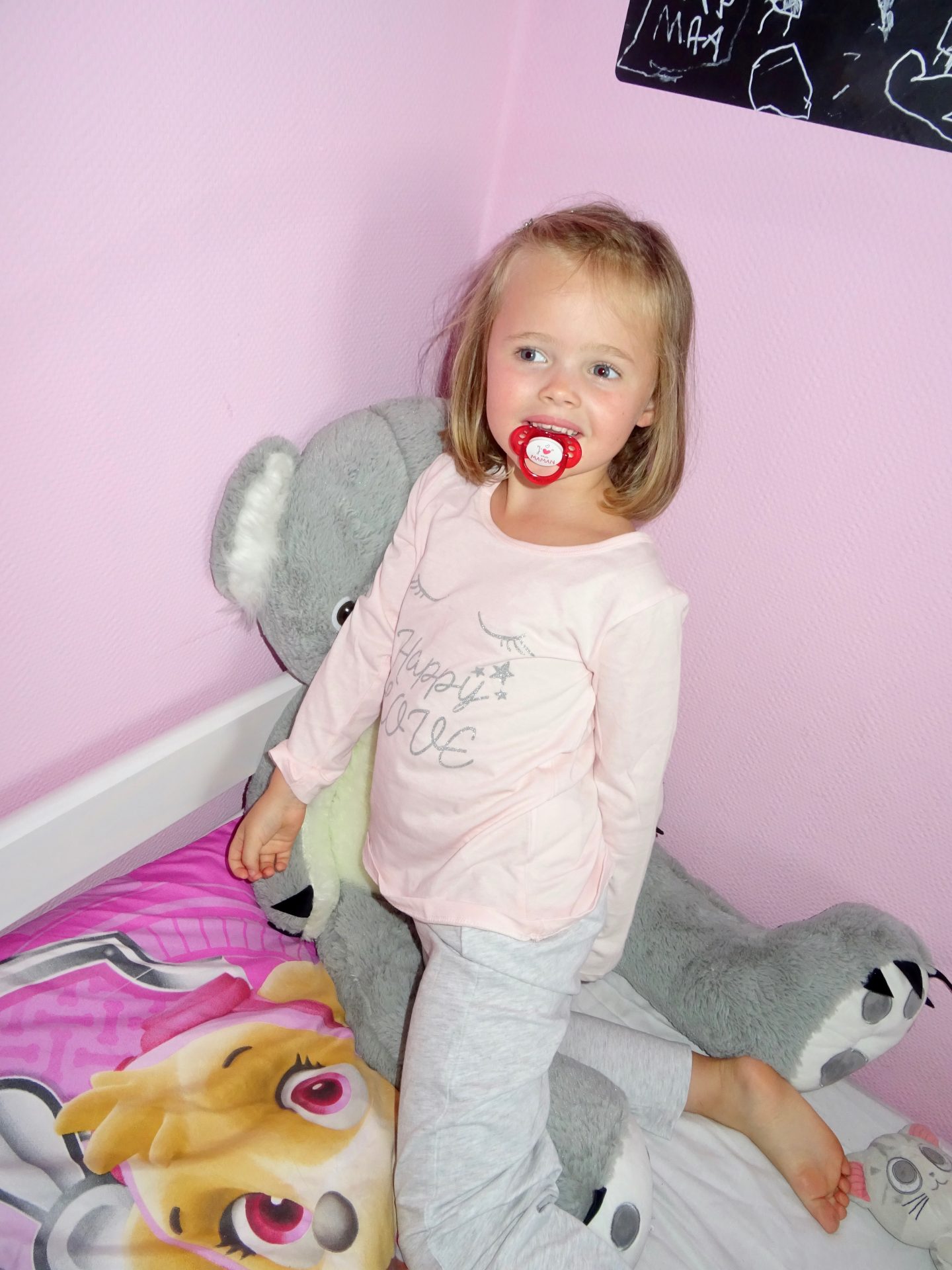 Le plus qu j’aime : elle sont élastiques et chipie peut les mettre et les enlever seule.