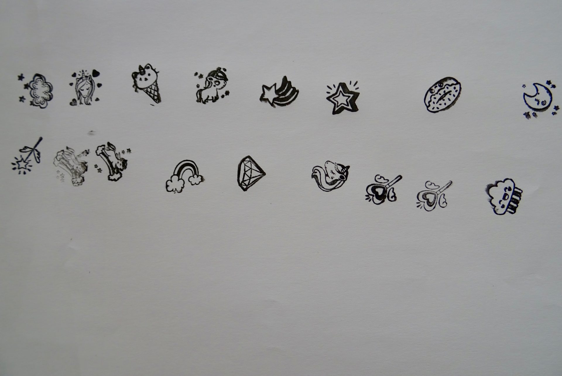 Une licorne par ci , une étoile filante par là et un donuts … même ses coloriages ont désormais des petits dessins tamponnés.