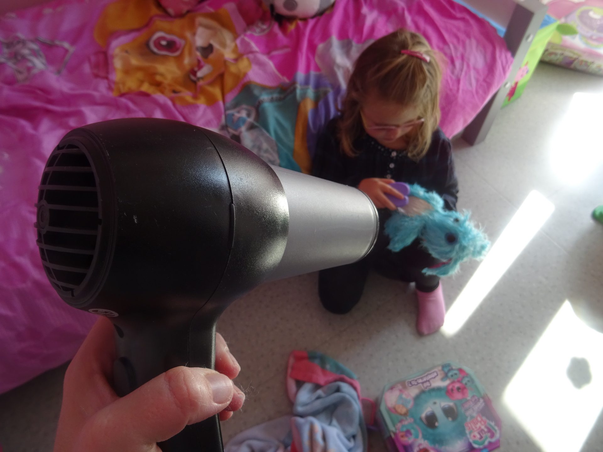 Après lavage de ce nouveau compagnon, il faut bien le sécher avec une serviette éponge, un sèche cheveux et il est aussi possible de le passer 8 minutes en mode essorage de votre lave linge. Puis bien le peigner…