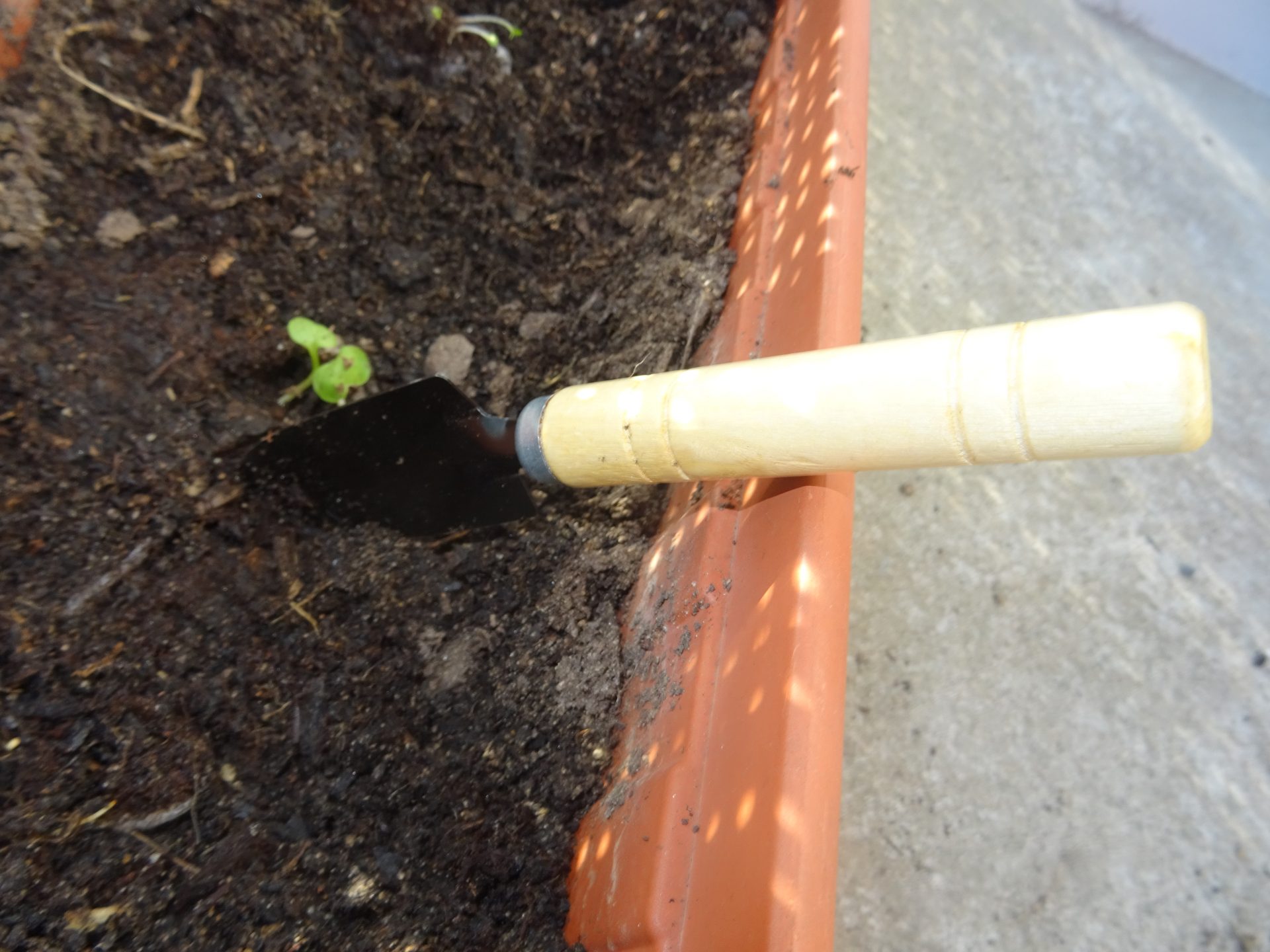 Et hop on plante les graines dedans , celles pour le radis rond blanc et celles pour le mesclun crétois.