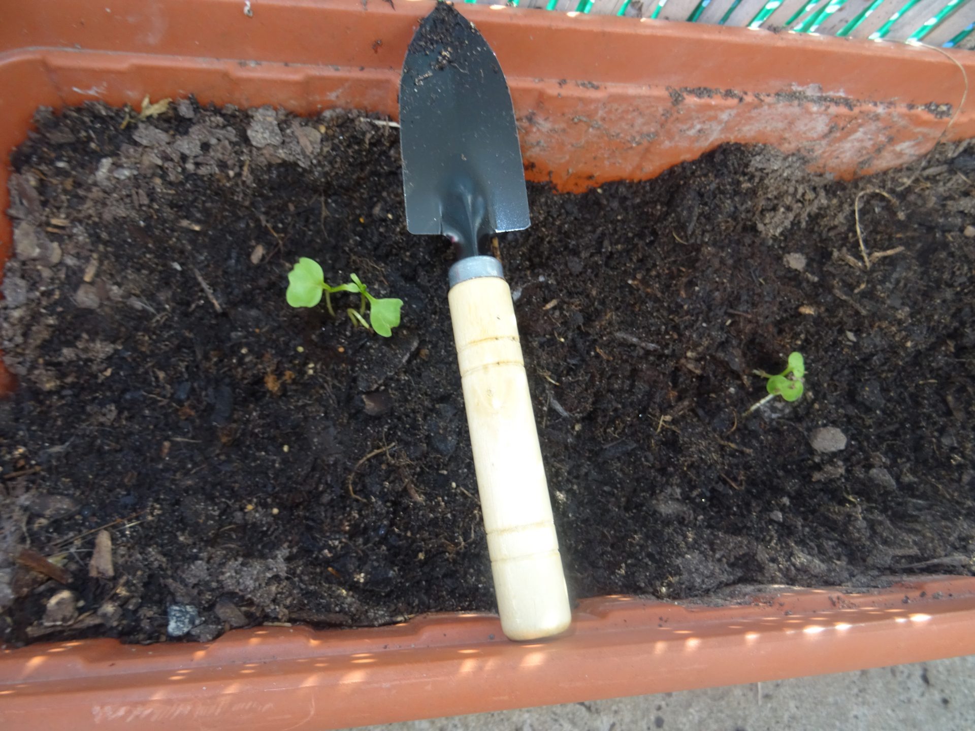Allez zou on laisse devant la porte fenêtre à l’intérieur le temps que les graines prennent.
