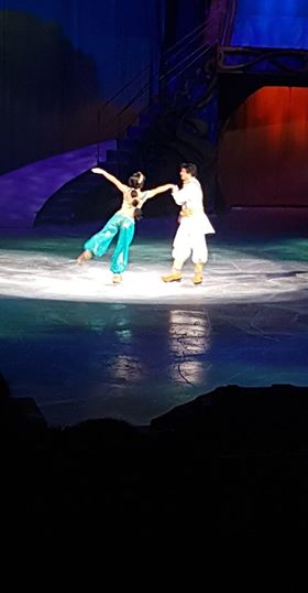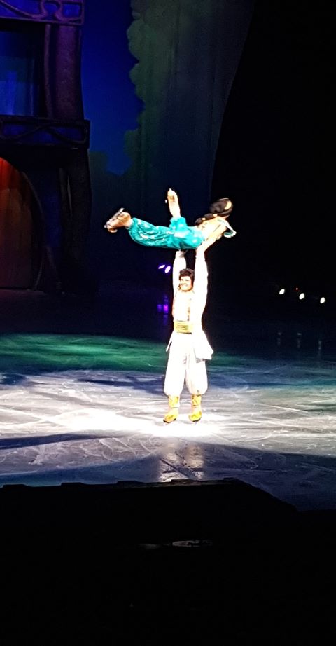Le spectacle débute avec Aladdin et la musique entraînante nous plonge de suite dans un magnifique spectacle et avec des costumes impressionnants de réalisme.