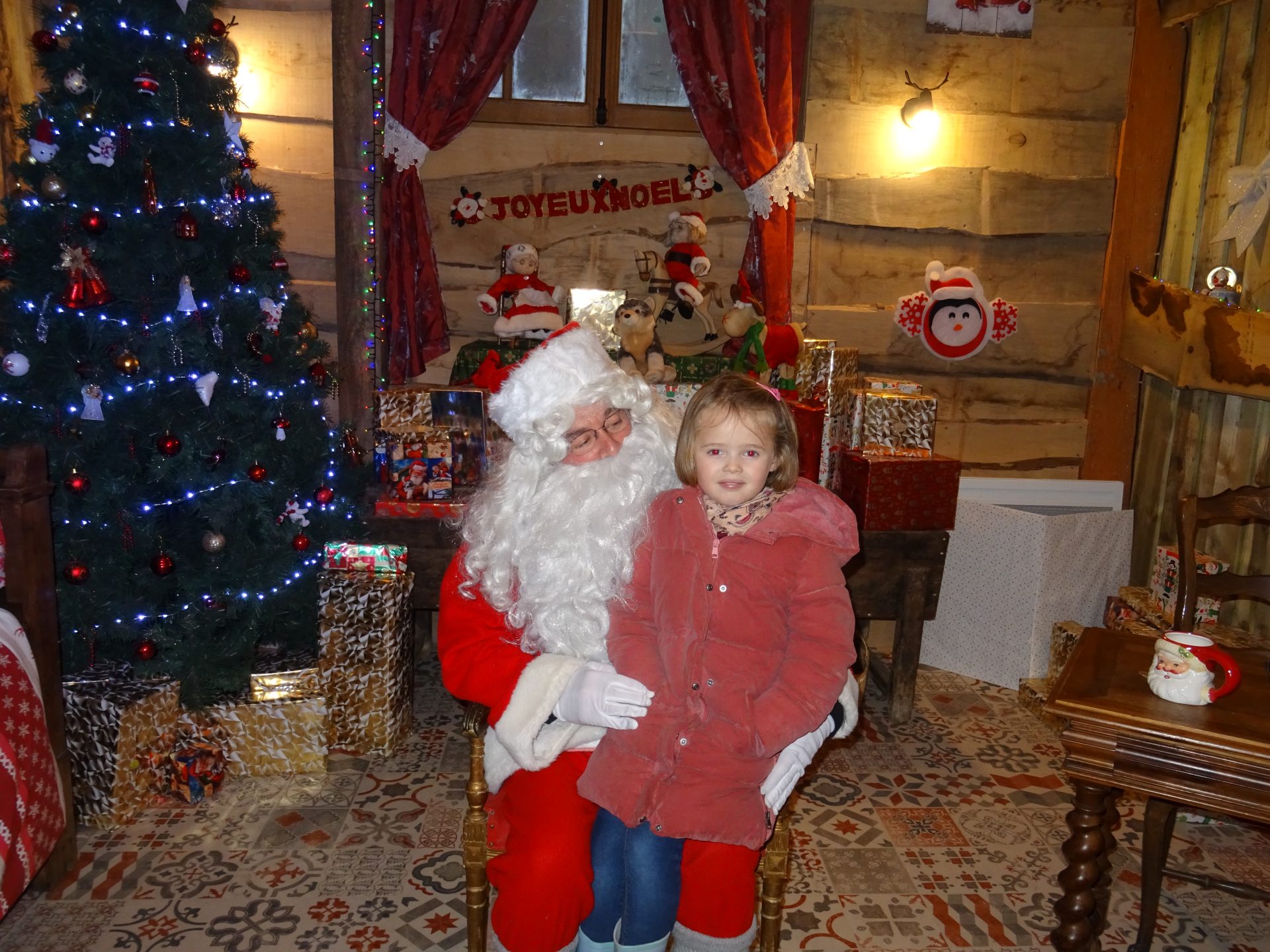 Un chalet décoré merveilleusement bien et un sapin majestueux nous plonge dans cet esprit de Noël en attenant notre tour pour rencontrer le Père Noël !