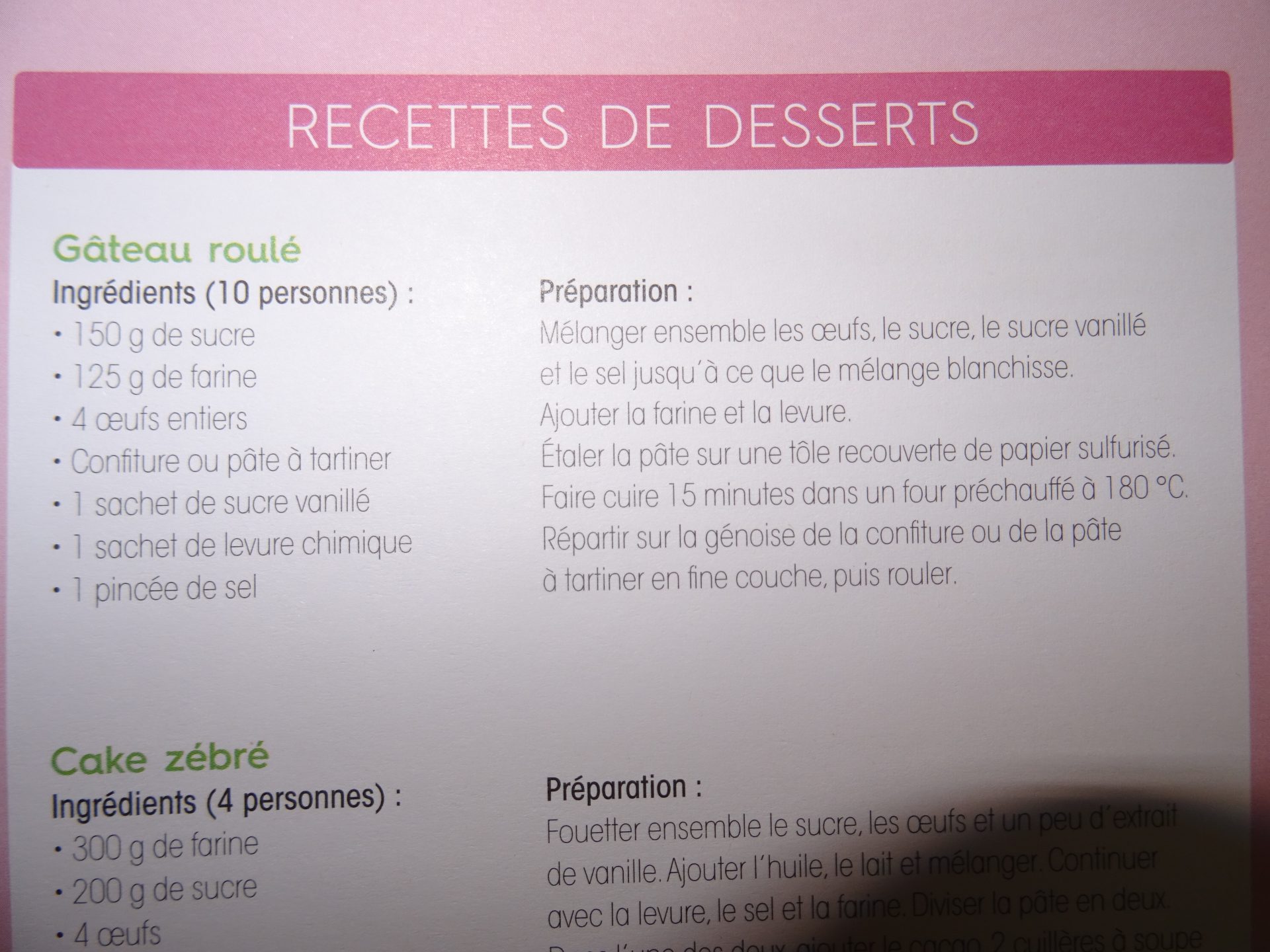 Pour chaque recette, retrouvez :