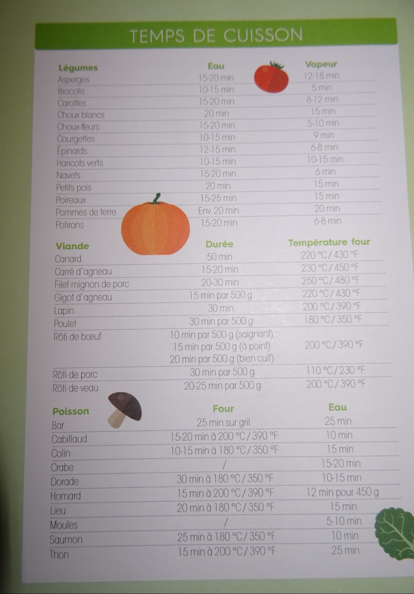 – le temps de cuisson