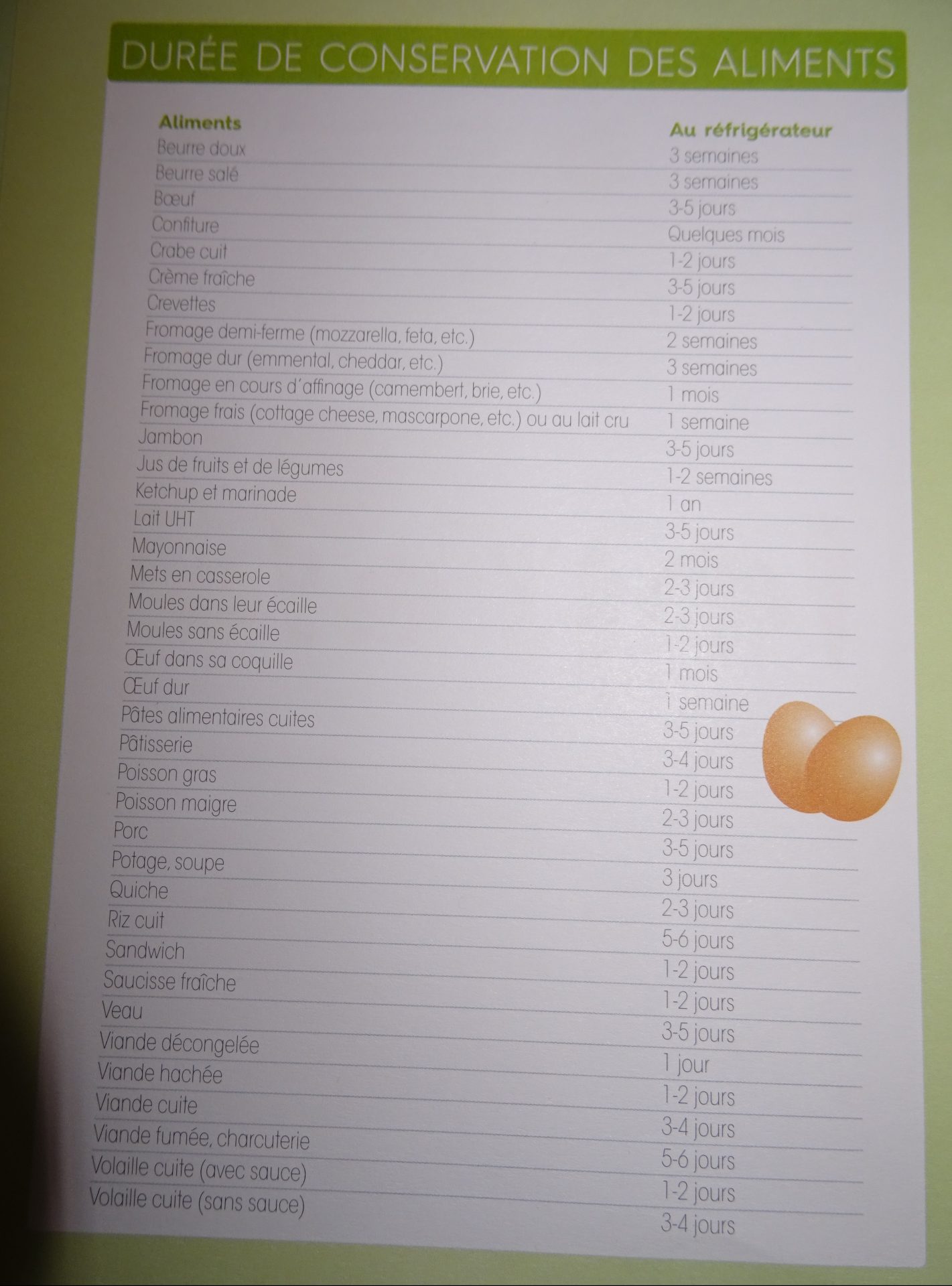 – la liste détachable des ingrédients