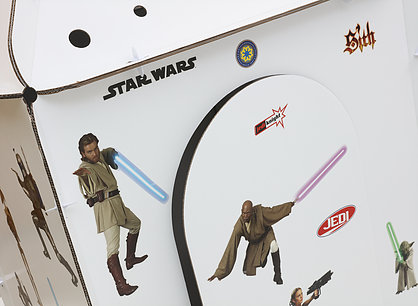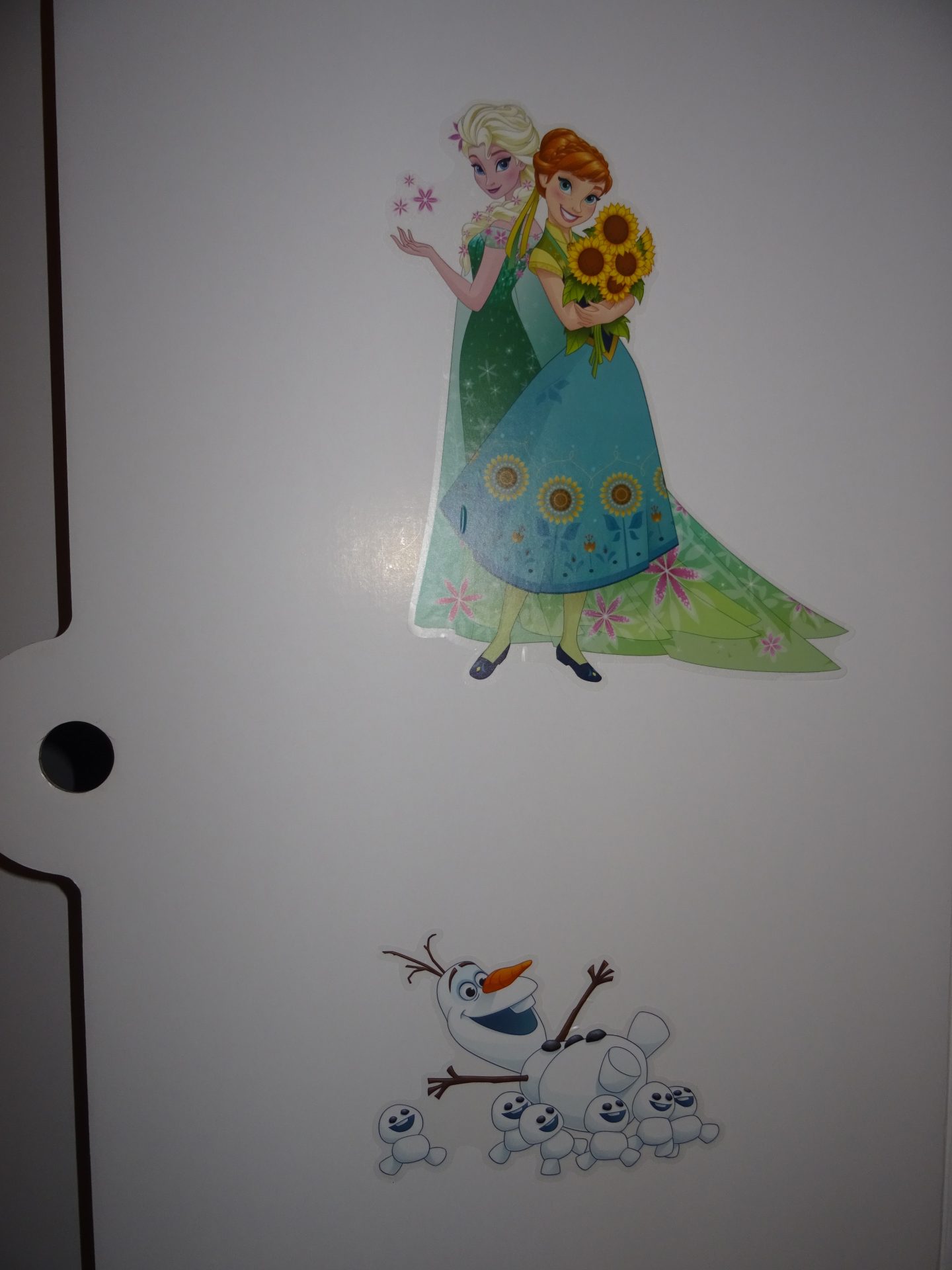 Alors c’est muni de nos stickers Reines des Neiges qu’avec chipie nous allons customiser cette jolie cabane !