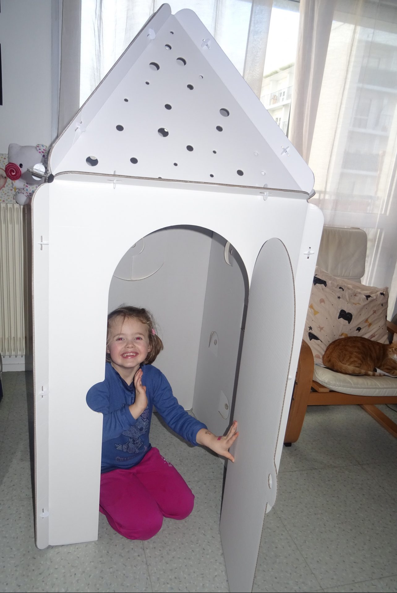 Alors là bravo, elle est géniale cette cabane. Ma fille adorerait en avoir une aussi, elle est bien grande en plus ! Je crois que notre chat aimerait s’y installer aussi, lui qui adore les cartons !