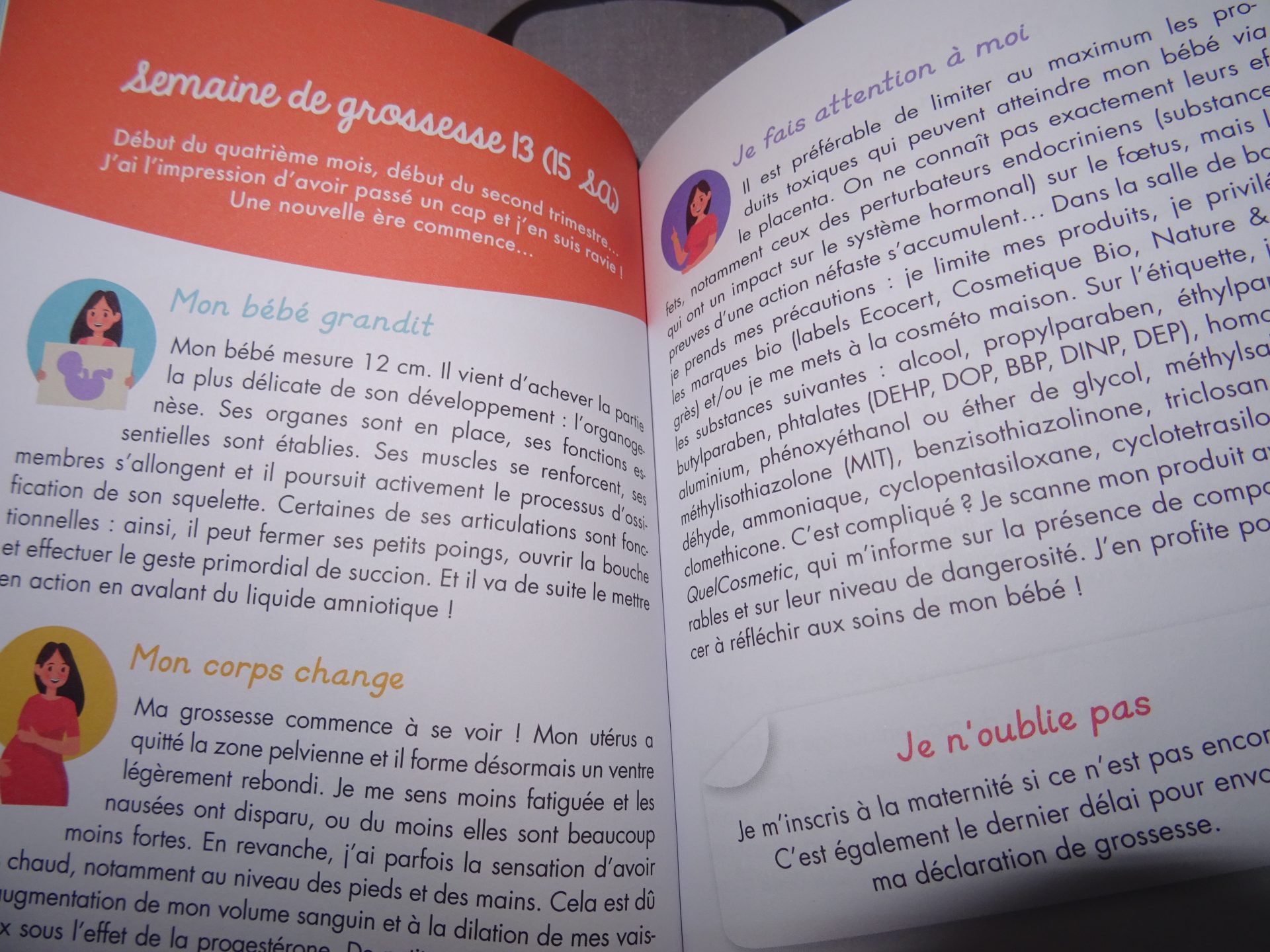 Les prenoms, la liste de naissance, les démarches administratives, l’environnement et la santé de la femme enceinte. Bref tout y est avec beaucoup de bienveillance.