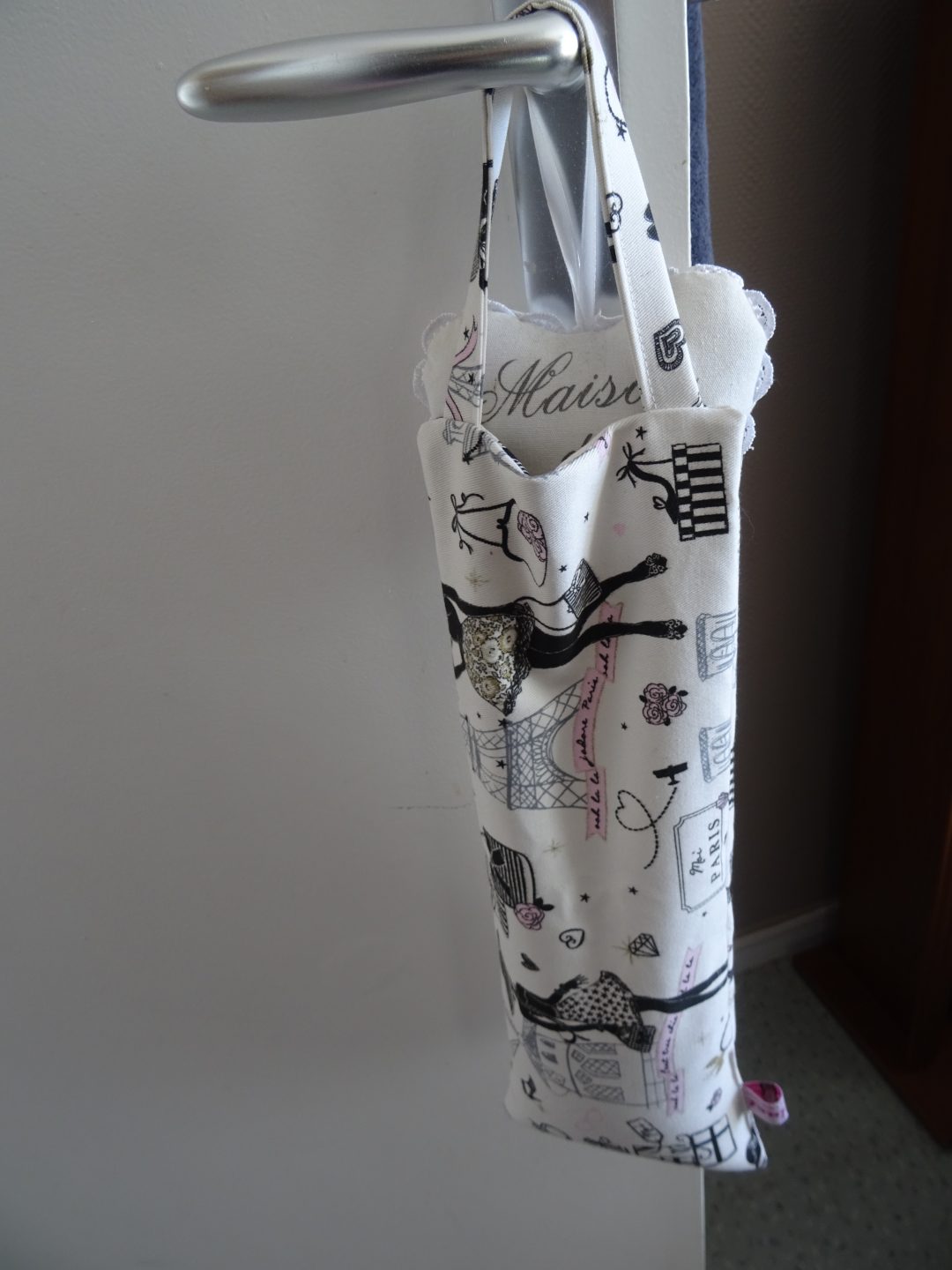 J’adore son design très parisienne et Girly. Très pratique avec sa anse pour l’accrocher à la poignée de porte de ma chambre je sais exactement où la trouver en cas de besoin;)