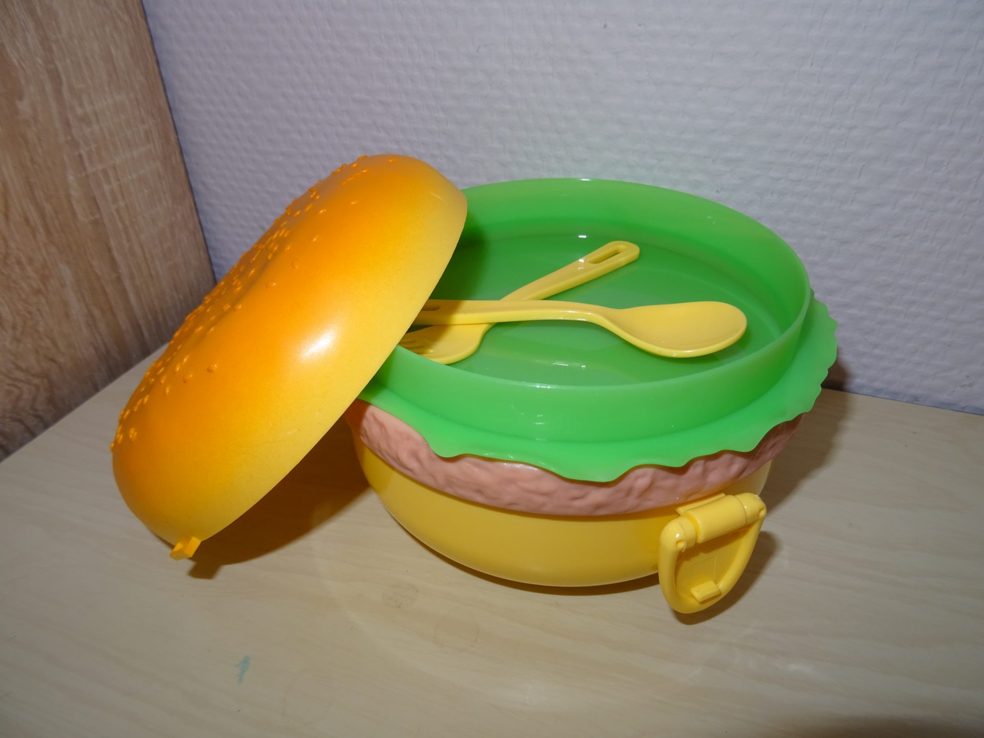 Dans le colis on découvre aussi un gros burger en plastique !