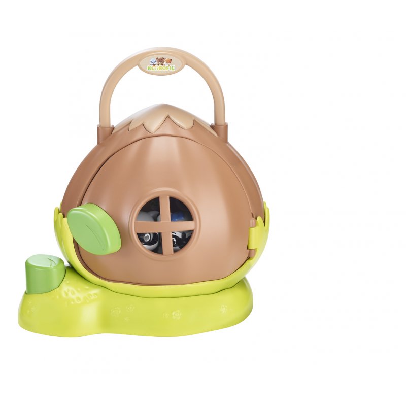 Cette maison noisette est composée de 3 pièces à découvrir pour mettre en scène les personnages (la chambre, la salle de bain et la cuisine) avec 3 parties mobiles (le réfrigérateur à ouvrir, la table à déployer et le lit).