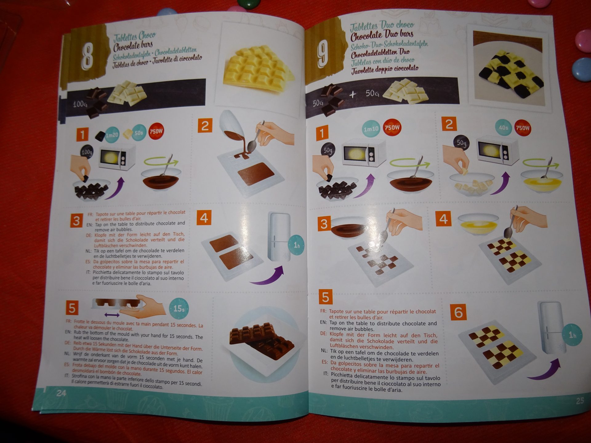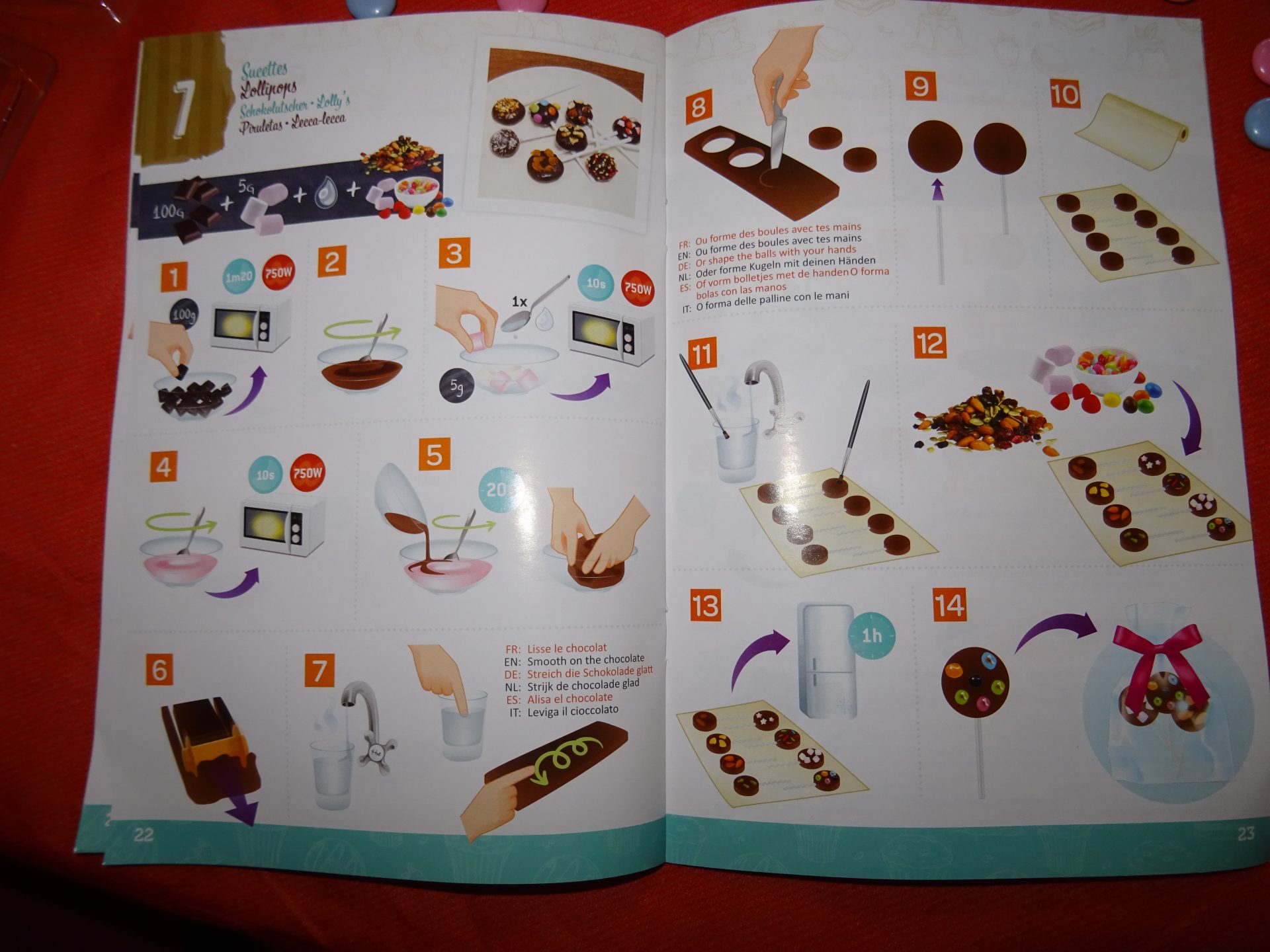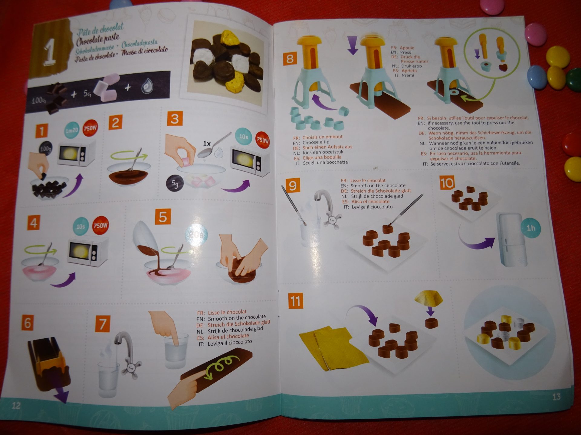 Pour commencer il faut bien lire le livre d’explications et se ravitailler en tablettes de chocolats et ingrédients nécessaires à réaliser vos chocolats.