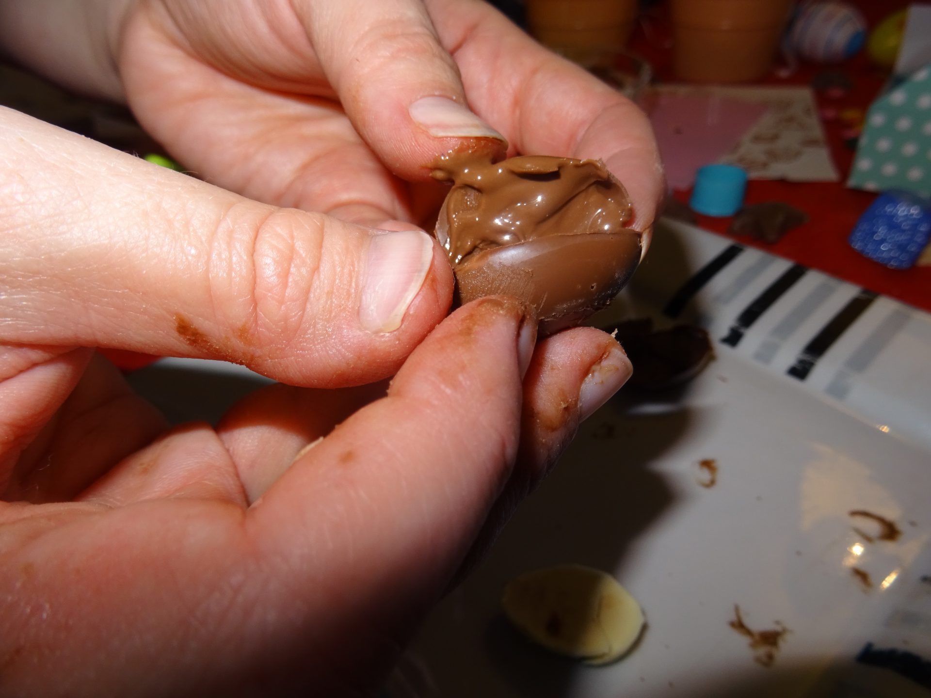 Opération un peu plus délicate qu’il vaut mieux la confier à un adulte car le chocolat fond très vite.