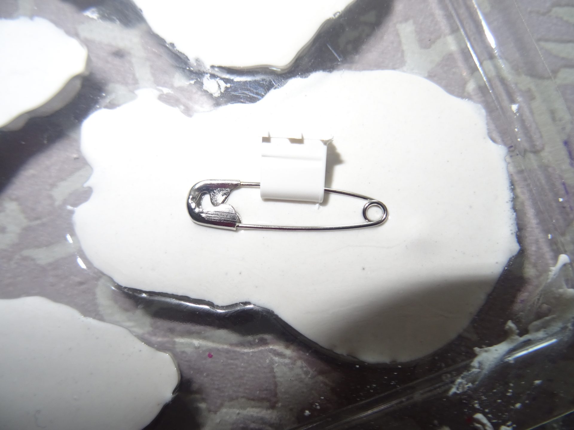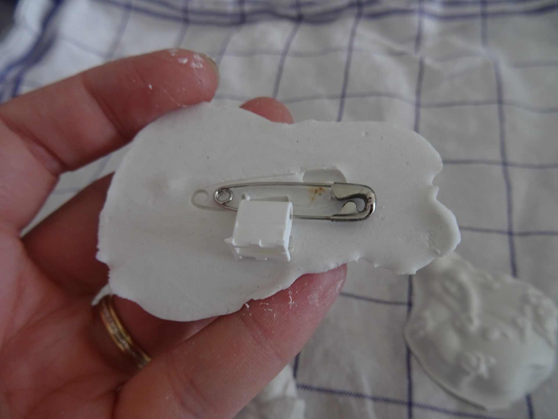 Si vous souhaitez accrocher ces moulages en broches sur un sac ou autres vêtements épais ou bien sur le frigo. Il faut placer de suites l’épingle ou l’aimant.