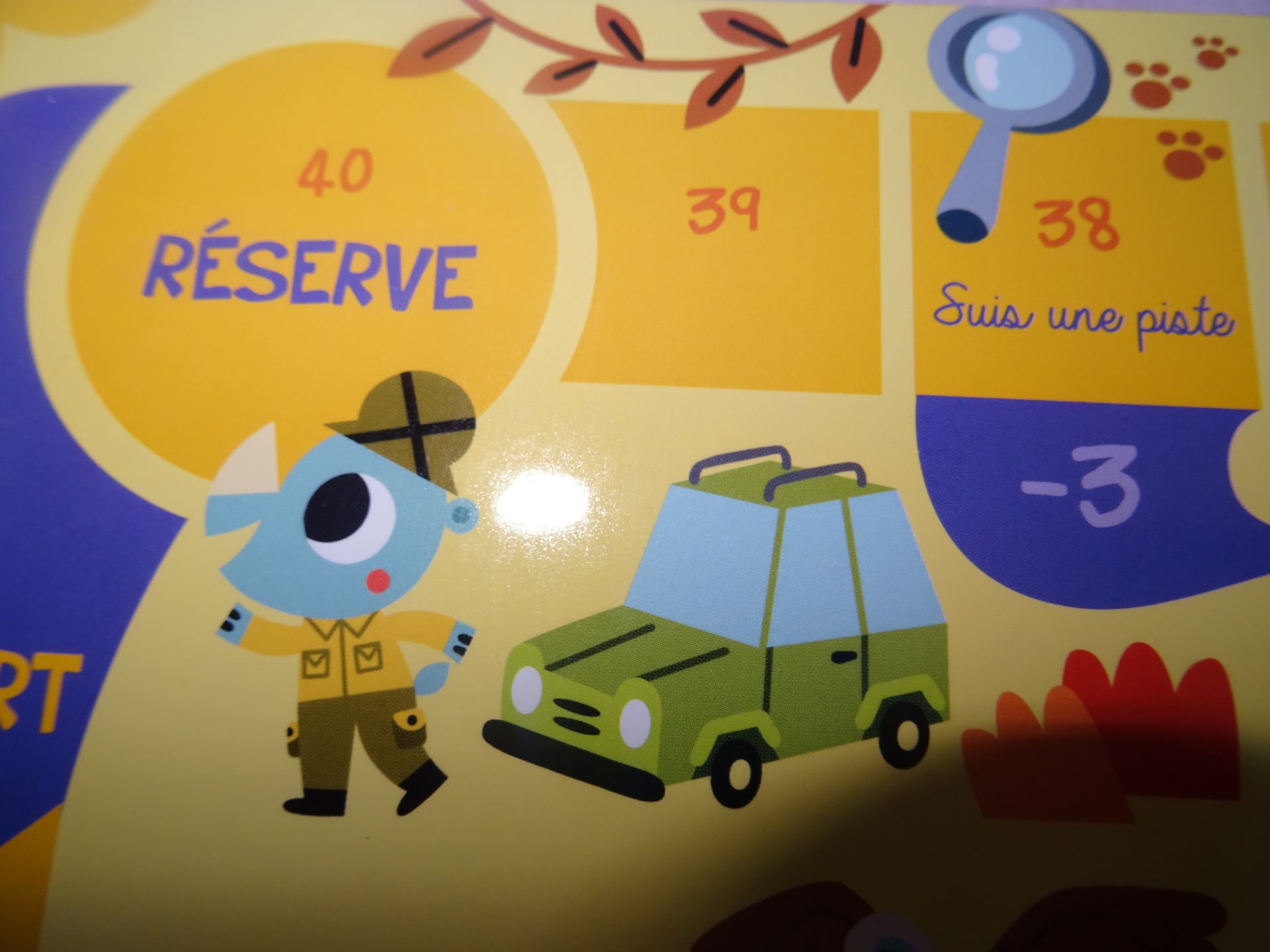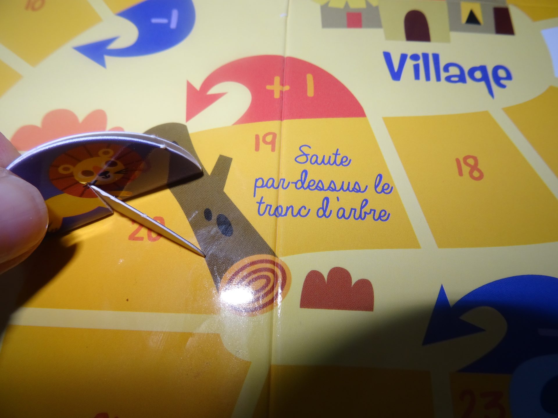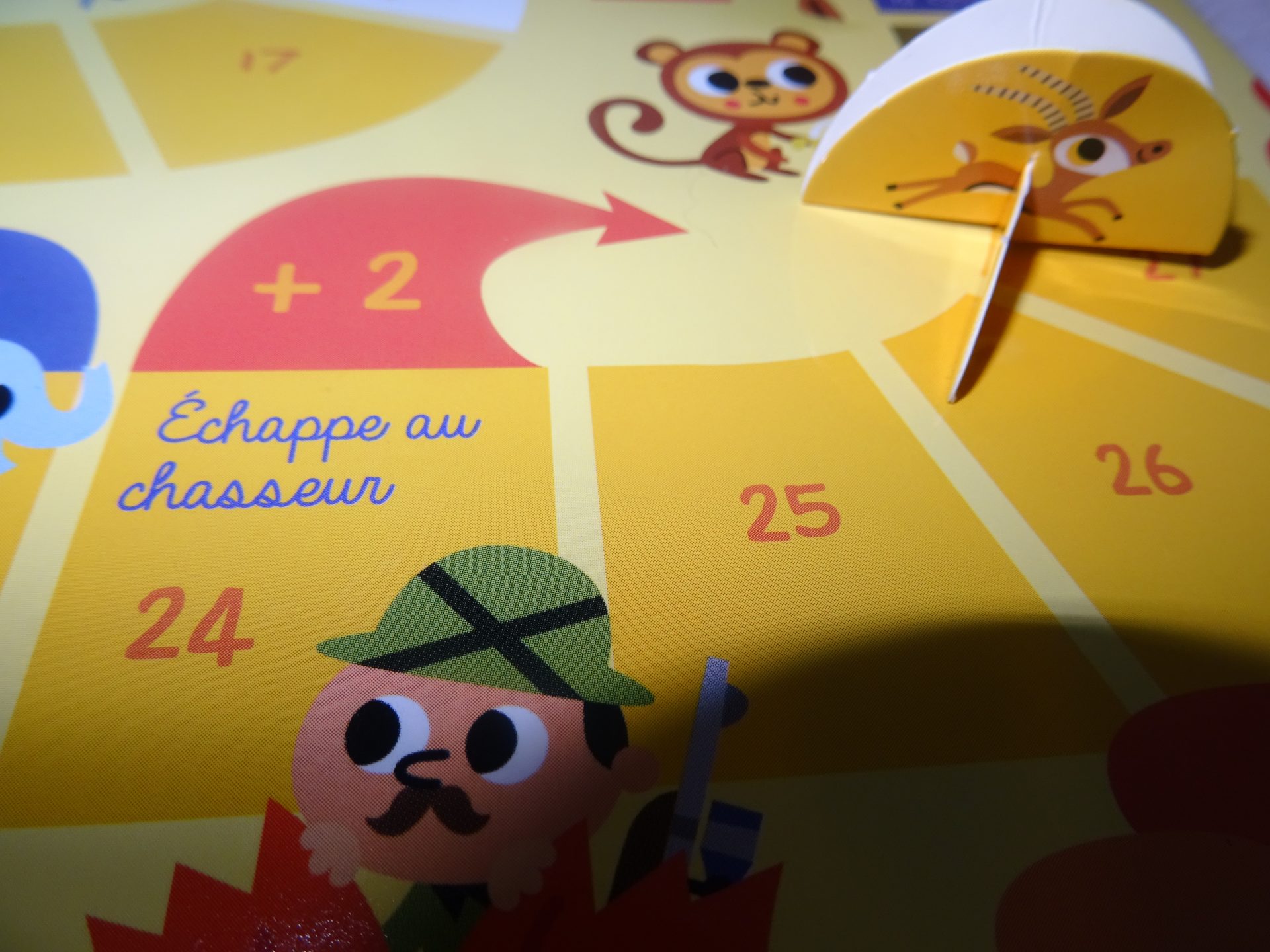Ce format savane est très original et apporte un plus à ce jeu avec des cases très originales comme sauter le tronc d’arbre, faites une sieste et sauter un tour, …