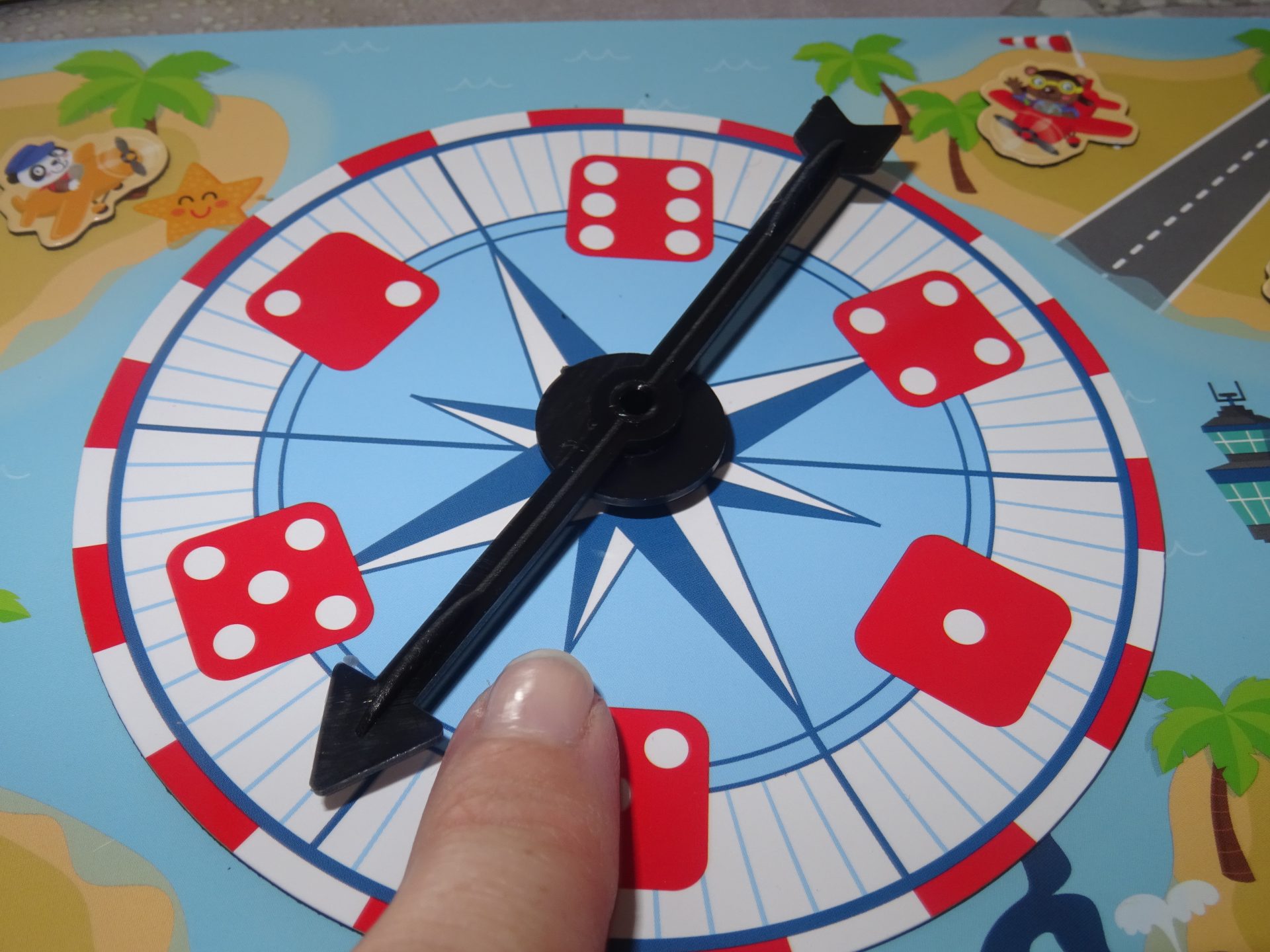 • Pour passer de l’aéroport à la case de départ, la flèche doit indiquer le dé avec 6 points (3 tentatives).