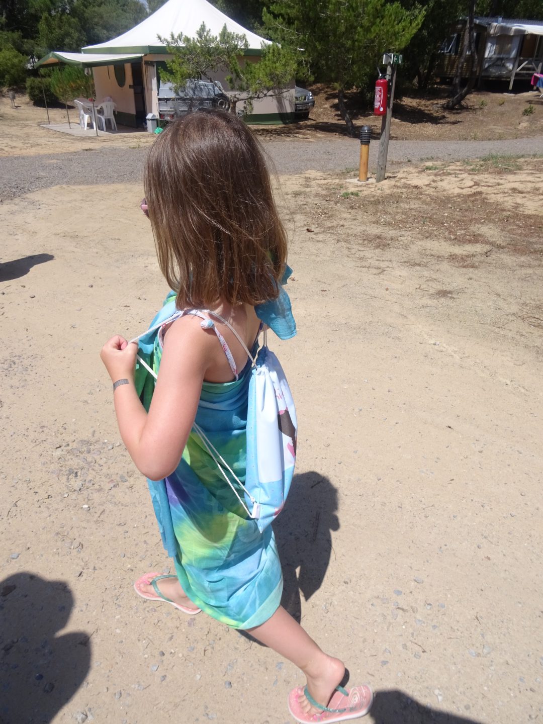 Juste à côté de notre Mobil-home nous avions des sanitaires communs tout colorés et mimis, alors chipie a voulu prendre sa douche tout les jours là-bas. Une âme de campeuse ? Oh que oui !! D’ailleurs on y retournera l’an prochain comme on fait chaque année.
