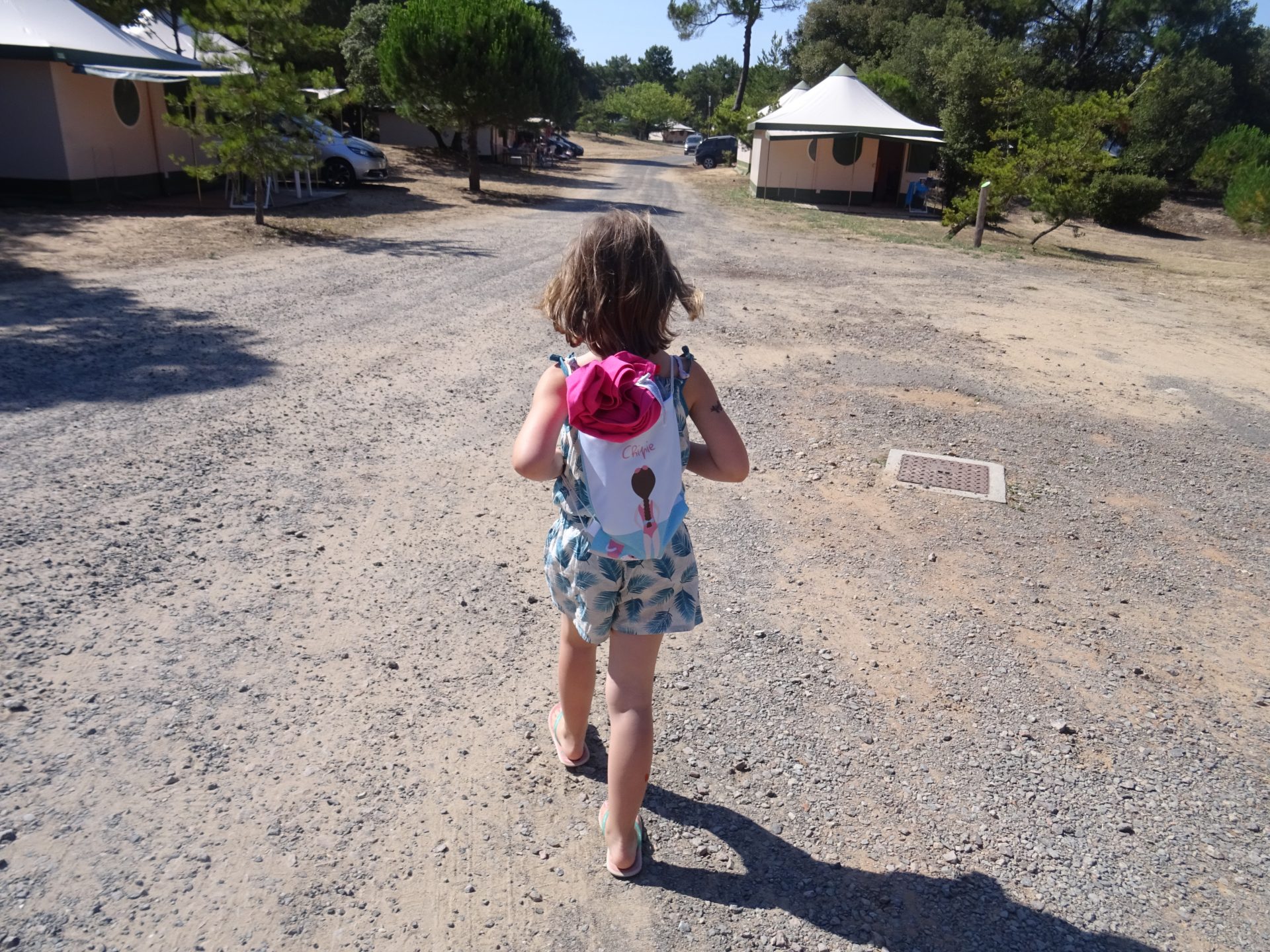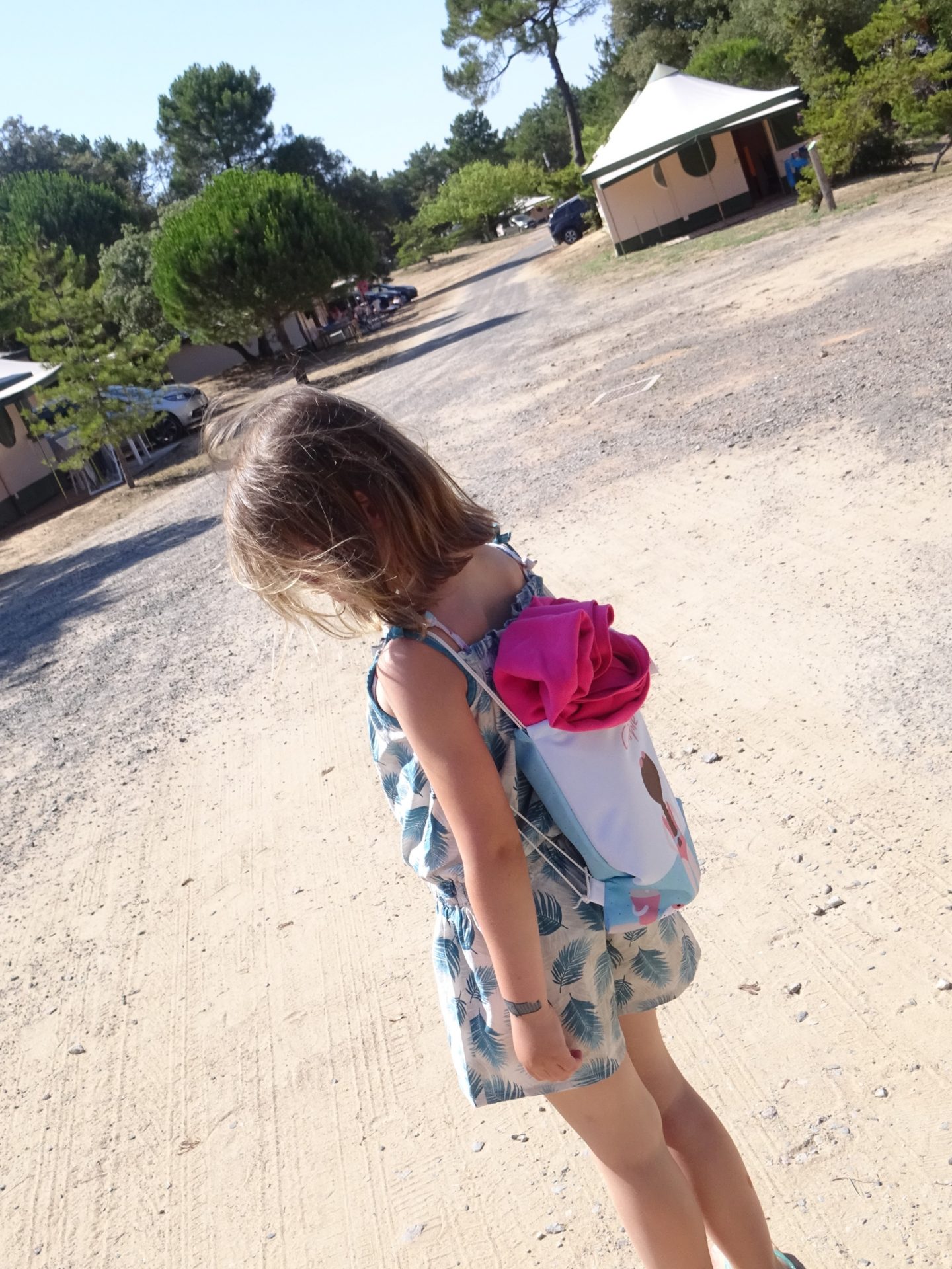 Une fois le sac rempli de ses affaires pour aller à la plage, chipie était trop contente de pouvoir porter ses propres affaires et moi j’étais aussi contente d’avoir un peu moins à porter 😉