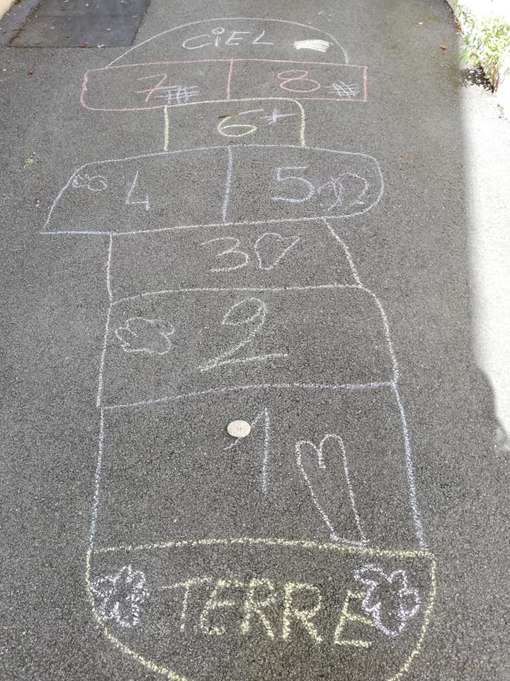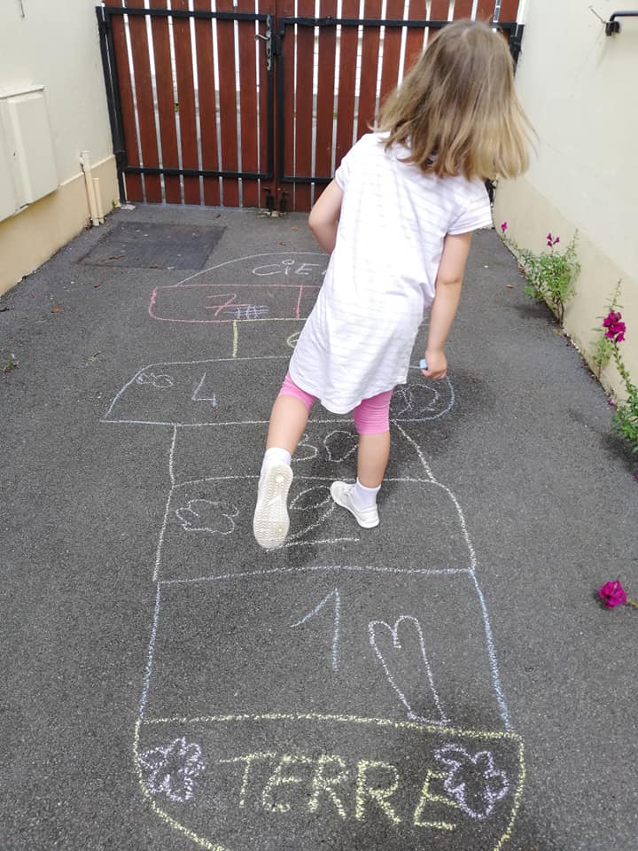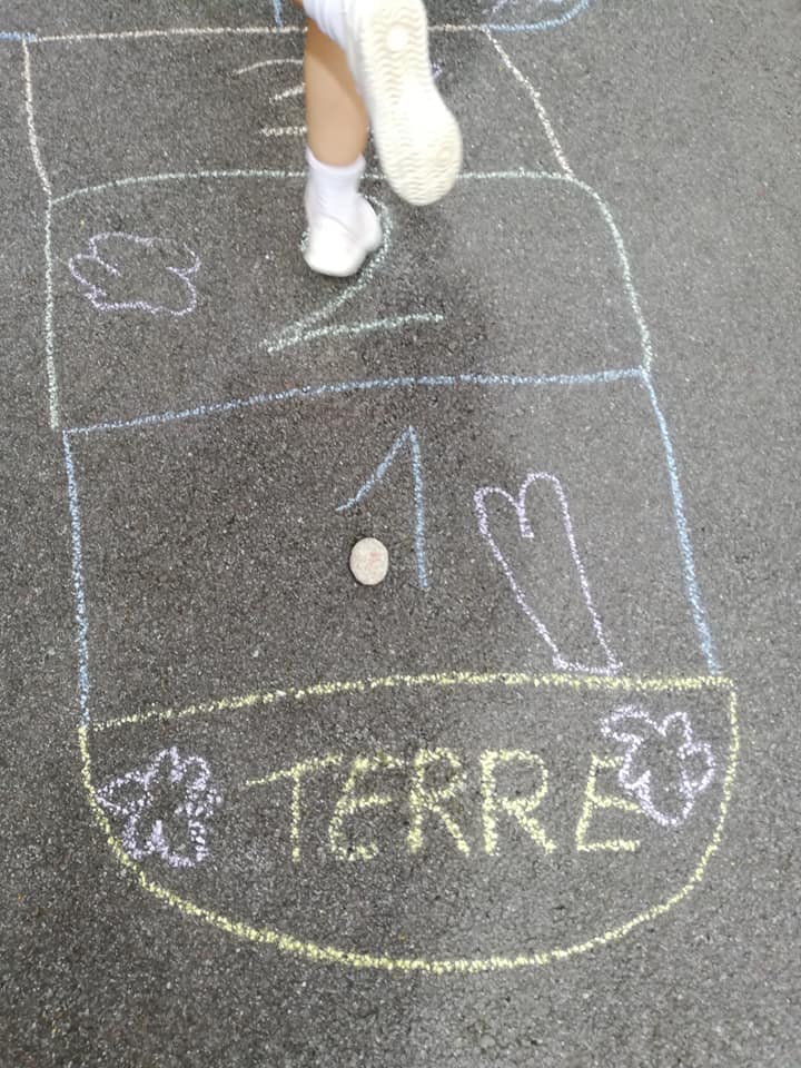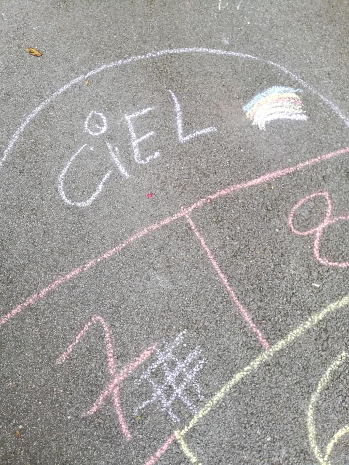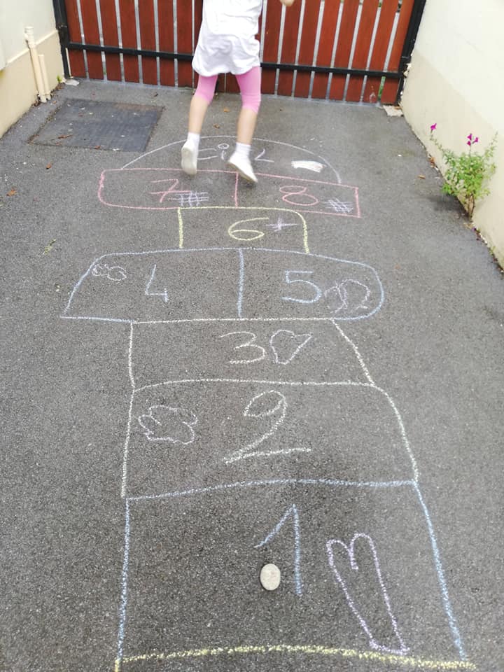 Trop chouette, on a adoré écrire sur le sol et s’amuser avec cette marelle !