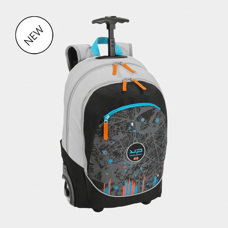 La petite astuce ingénieuse de ce cartable : les anses peuvent se scratcher pour être surélevée afin de ne pas se prendre dans les roues quand le cartable est utilisé sur roulettes.