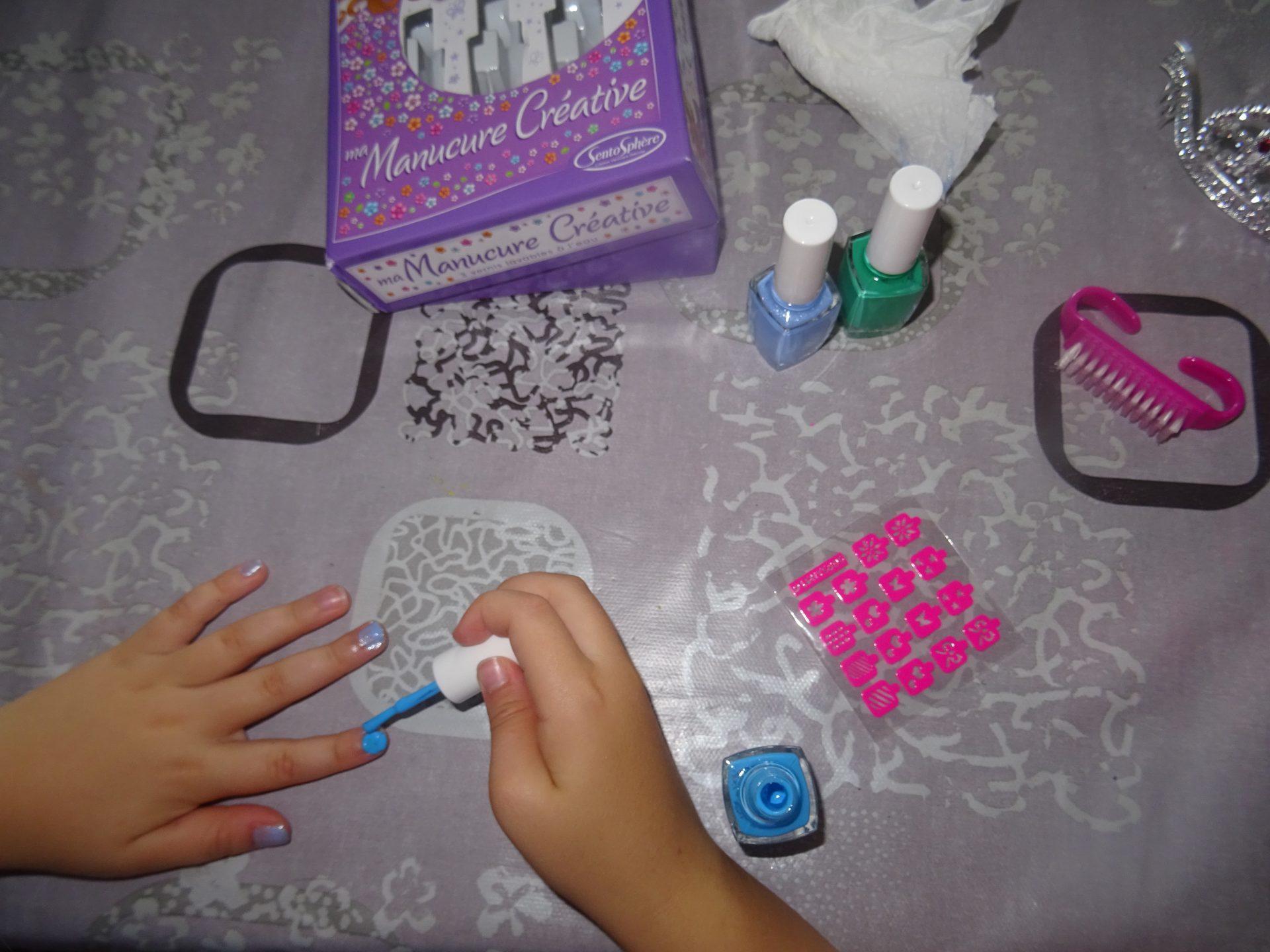 Chipie a donc tester seule ce kit. Elle adore ce peindre les ongles et a décidé de varier les couleurs.