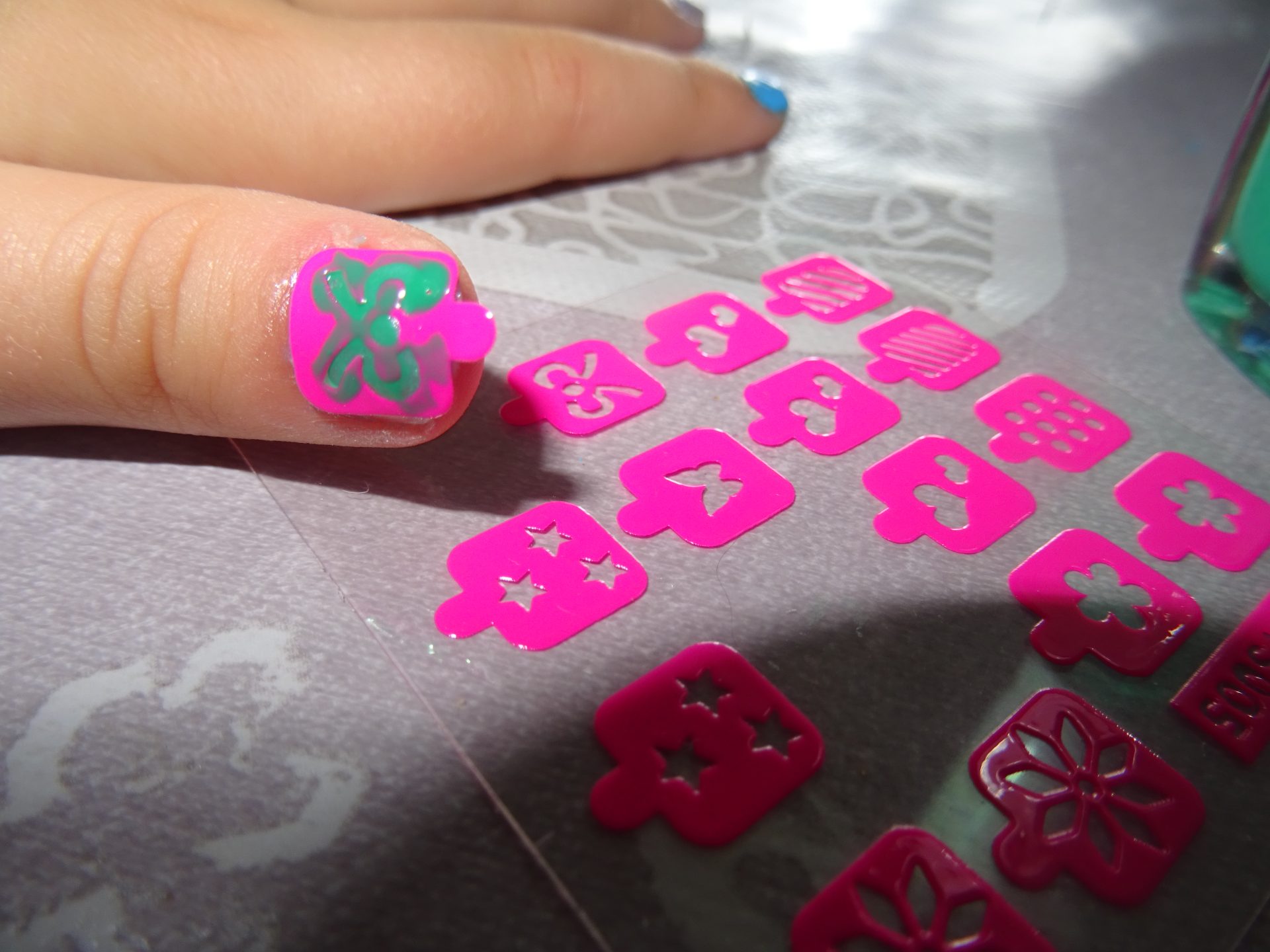 Première couche de posé, séché et hop un pochoir posé pour rendre encore lus Girly ses ongles.