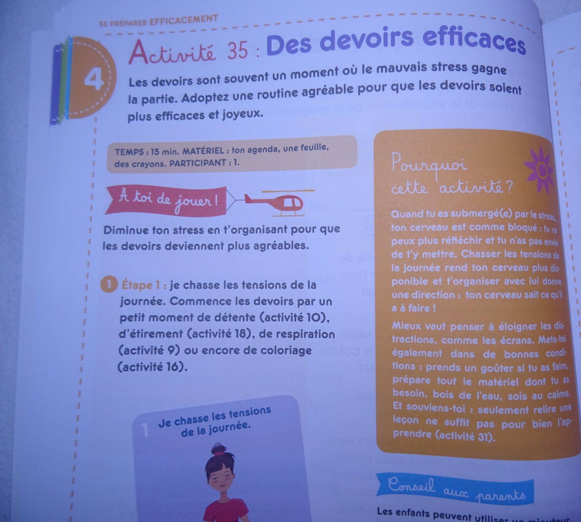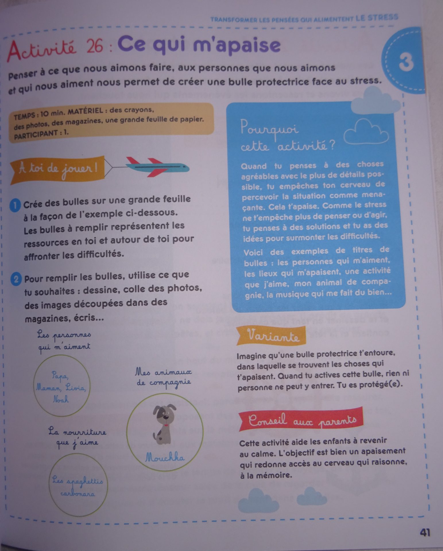 Ce cahier d’activité est à regarder comme un cahier de vacances pendant des périodes de grands stress ou juste apprendre à maitriser ses émotions.