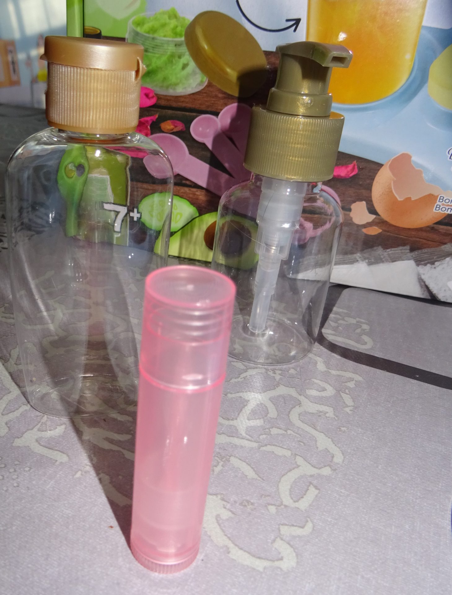 On utilise le mélangeur pour préparer shampoing, lotions, masques et crèmes puis verse-les dans les différents flacons.