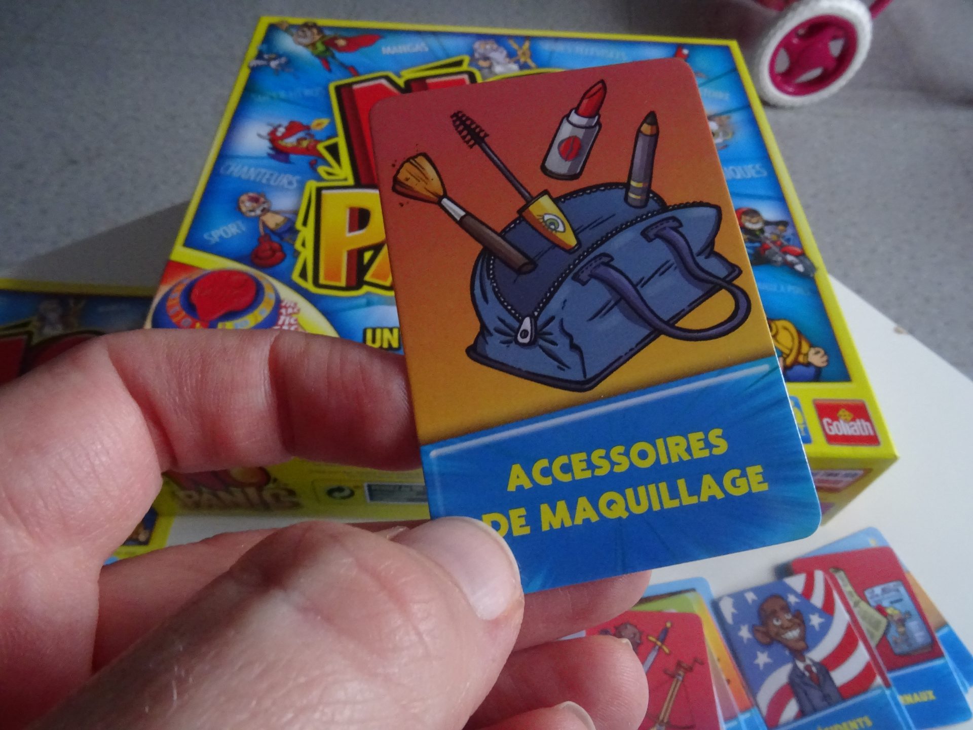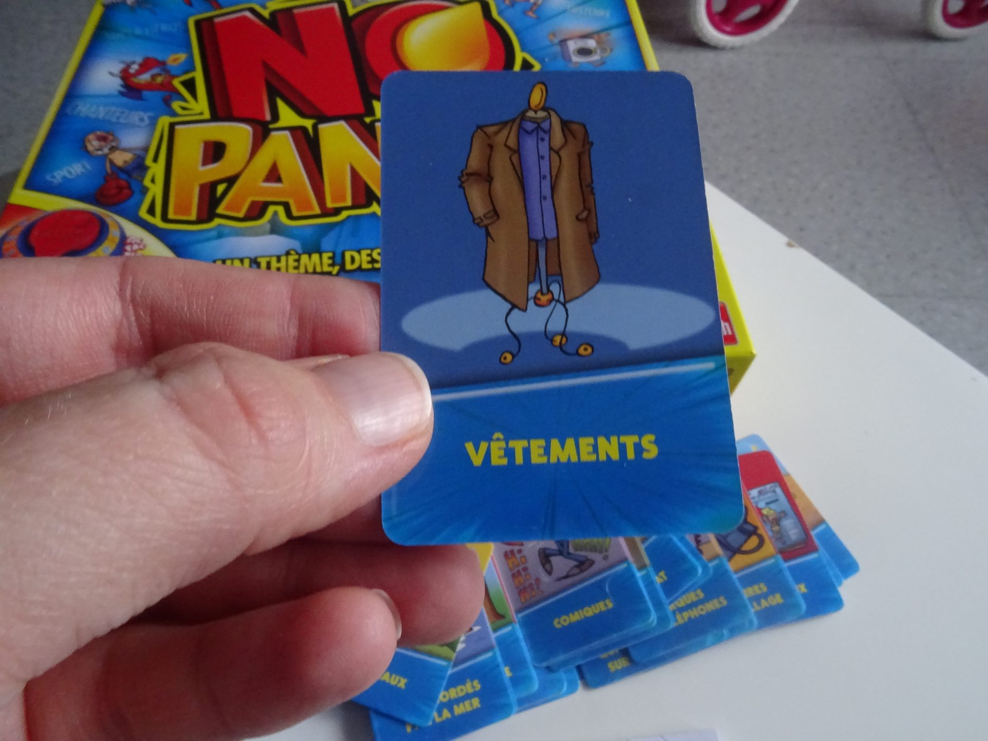 Hahaha!! Que de bons moments passés avec ce jeu! Tout le monde peut y participer! Il faut réfléchir vite et bien! J’aime beaucoup voir ma petite niece de 8 ans paniquer en cherchant les mots! Le chrono fait beaucoup de bruit et du coup, on en perd sa concentration, on panique plus et c’est encore meilleur!