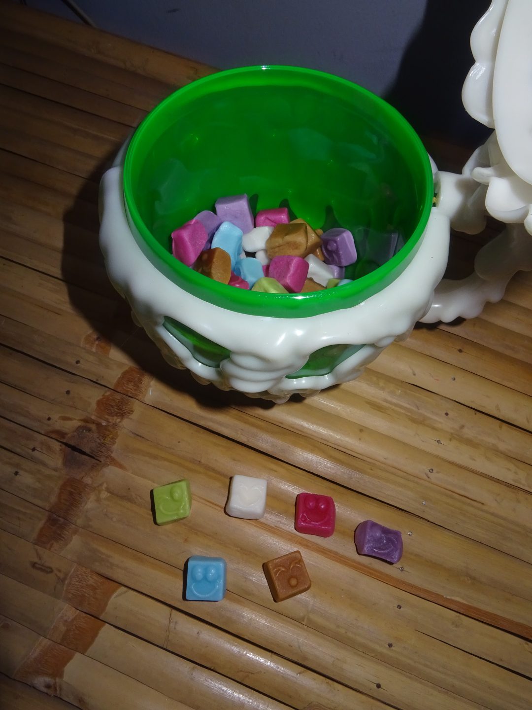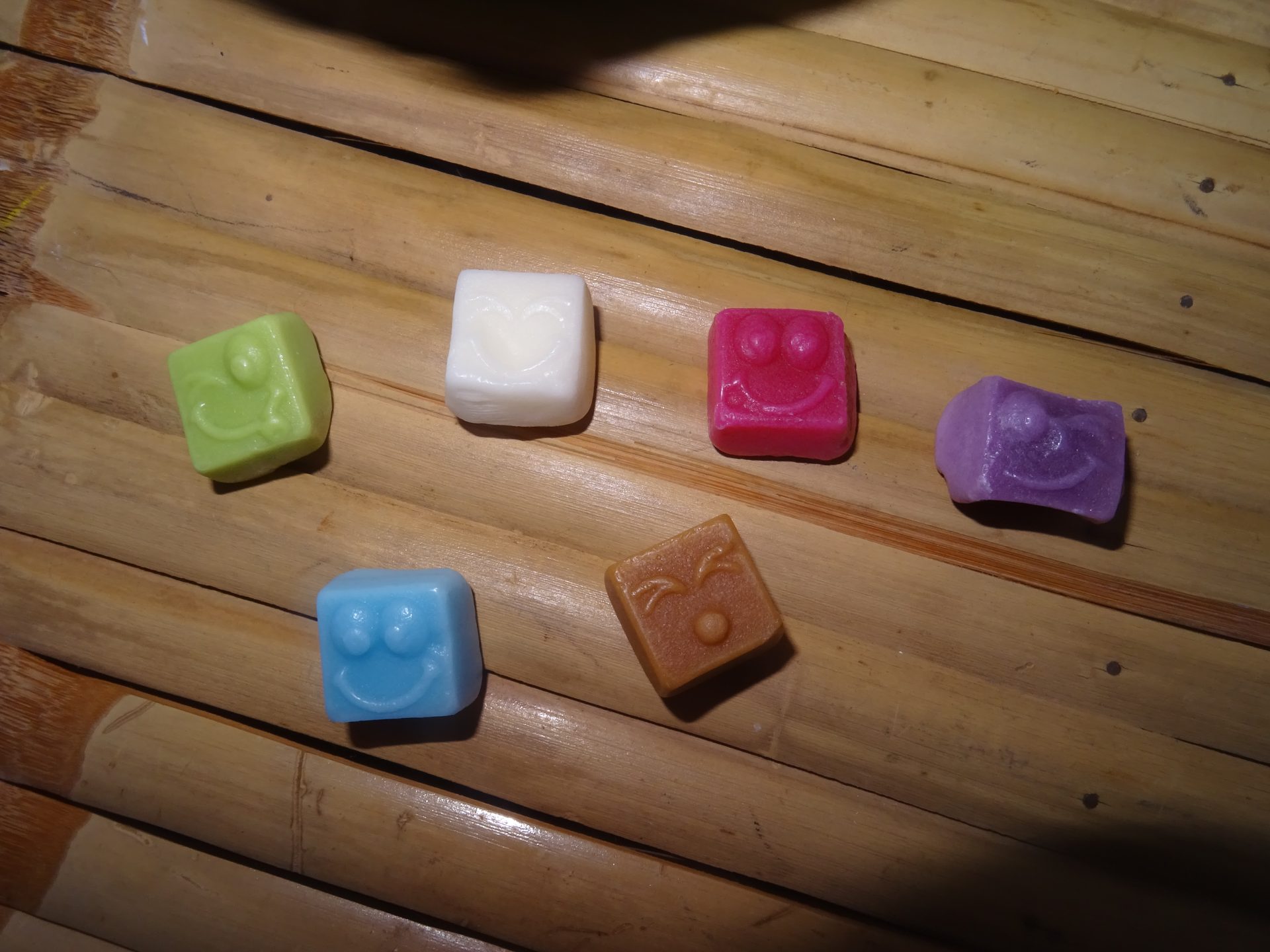 Des petits cubes tous doux et moelleux à la texture aérée et inédite , avec des visages colorés souriants aux bons goûts de fruits, de vanille et de cola.