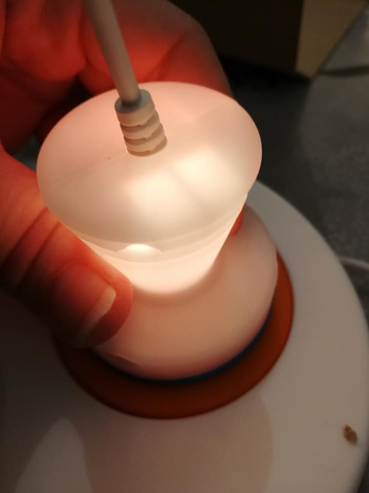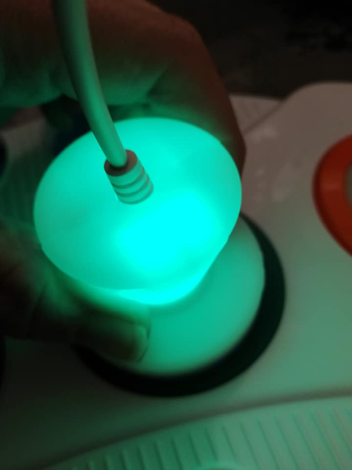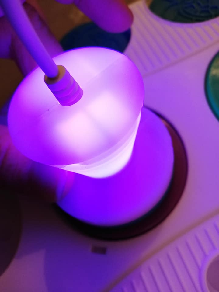 On le pose sur le tampon lumineux qui va permettre de nous dire en lumière la couleur choisie.