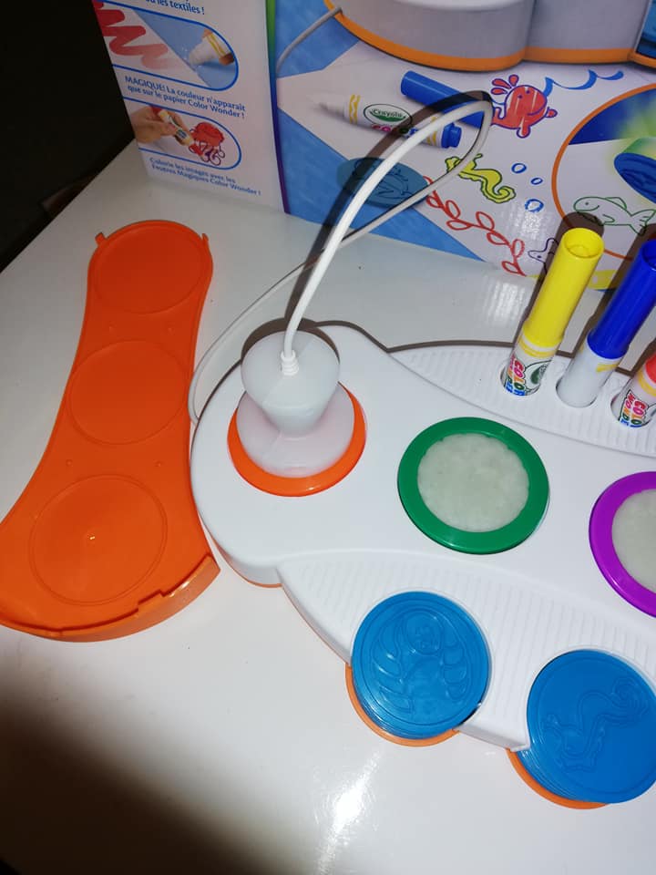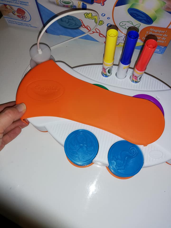 Aujourd’hui on va dessiner avec chipie mais sans se tâcher grâce aux tampons magiques lumineux de chez Crayola.