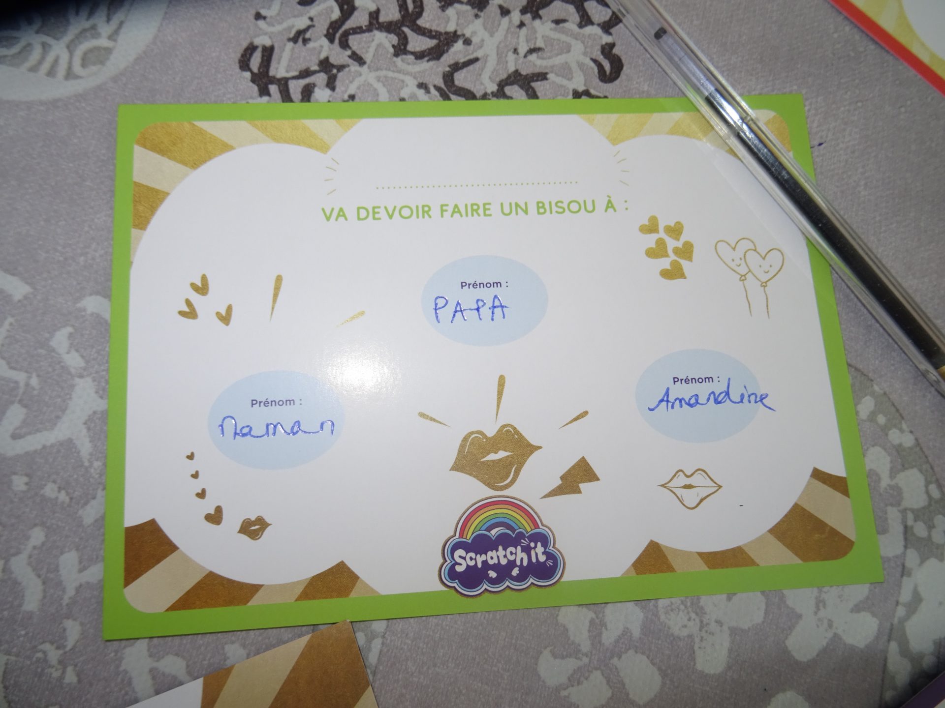 Allez une fois réalisé, il faut gratter ces cartes pour découvrir les messages qui y ont été cachés !