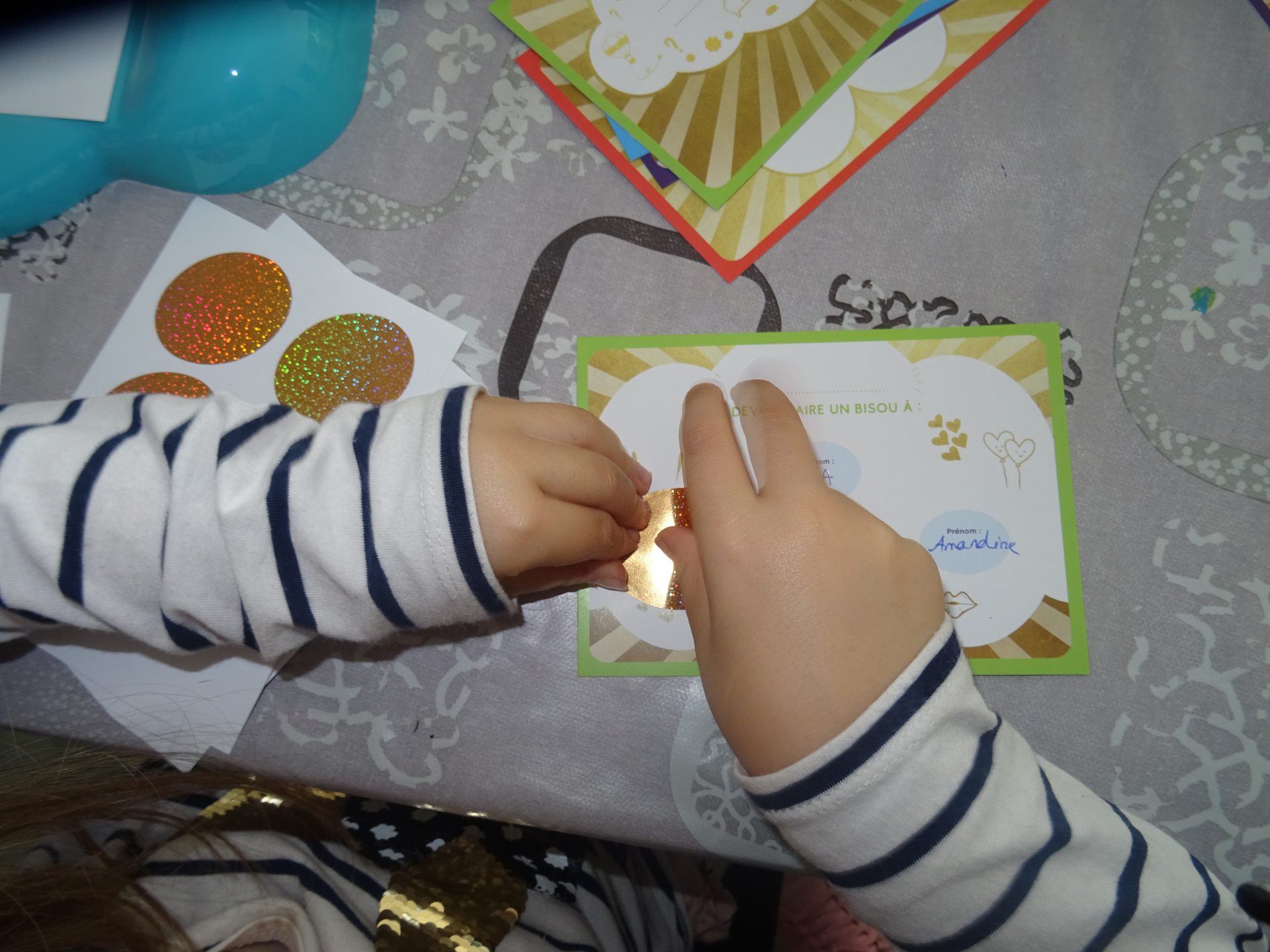 Enfin, il faut coller ces stickers sur les cartes en recouvrant les messages puis on les offre.