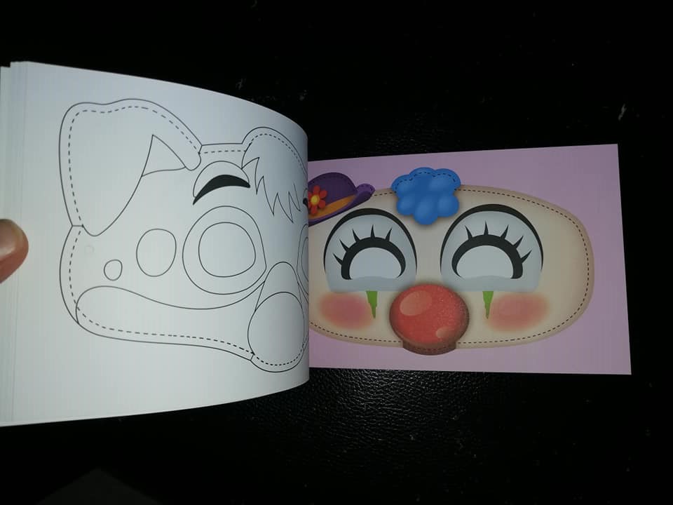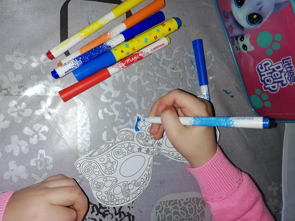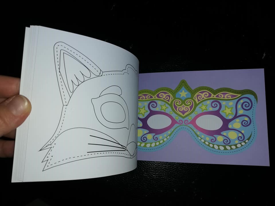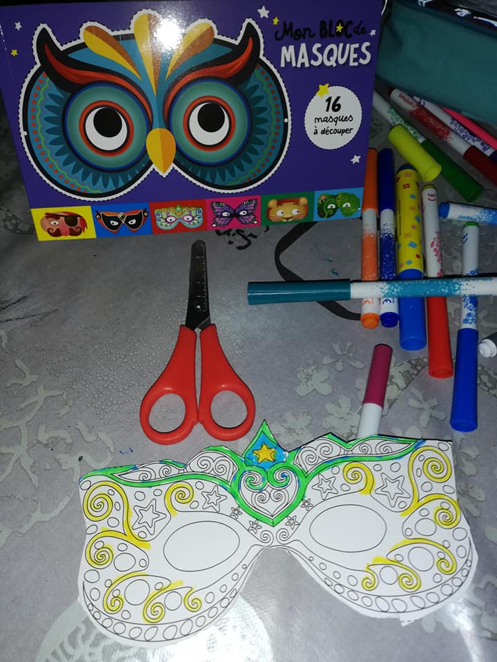 L’enfant colorie à son imagination ou en copiant le modèle au verso du coloriage pour faire un magnifique masque personnalisé.